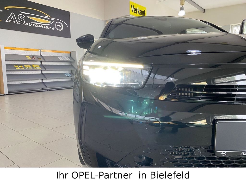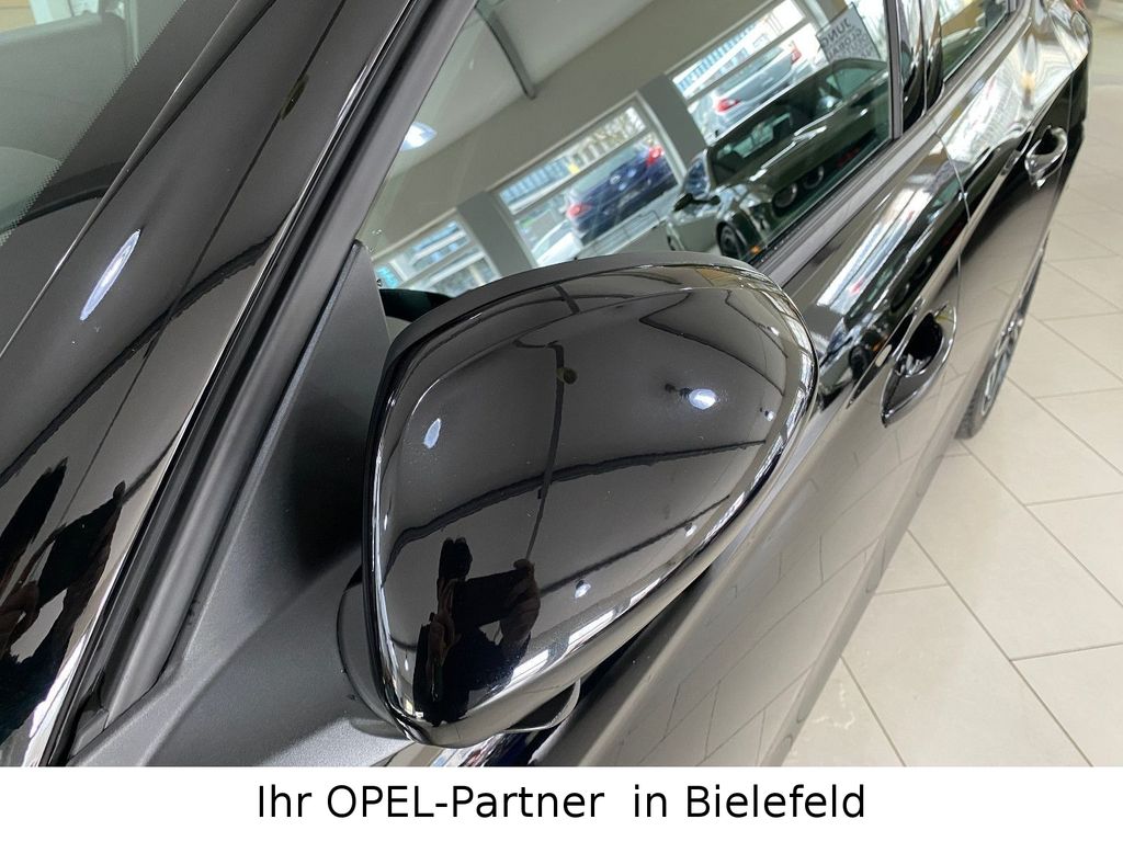 6 Lautsprecher, Airbag Fahrer-/Beifahrerseite, Audiosystem Multimedia, Außenspiegel elektr. verstell- und heizbar, elektr. anklappbar, B-Säulen schwarz Hochglanz (außen), Bordcomputer, Bremsassistent, Dach Kontrast-Lackierung, Dachhimmel schwarz, Einparkhilfe vorn und hinten mit Parksensoren seitlich, Elektron. Stabilitäts-Programm Plus (ESP), Fahrassistenz-System: Berganfahr-Assistent (HSA, Hill Start Assist), Fahrassistenz-System: Müdigkeitserkennungs-Sensor, Fahrassistenz-System: Spurhalteassistent, Fahrassistenz-System: Totwinkel-Assistent, Fahrassistenz-System: Verkehrszeichenerkennung, Farbdisplay (7 Zoll), Fensterheber elektrisch vorn + hinten, Fensterheber vorn elektr. mit Einklemmschutz, Feststellbremse elektrisch, Gepäckraumbeleuchtung (LED), Geschwindigkeits-Regelanlage (Tempomat) inkl. Geschwindigkeits-Begrenzeranlage, Getriebe Automatik - mit Start-/Stop (8-Stufen), Heckleuchten LED, Heckscheibenwischer, Innenausstattung: Dekorleisten Rot, Isofix-Aufnahmen für Kindersitz an Beifahrersitz, Isofix-Aufnahmen für Kindersitz an Rücksitz, Karosserie: 5-türig, Kopf-Airbag-System, Kraftstofftank 44 Ltr., Lenkrad (Leder, vegan) mit Multifunktion, Lenksäule (Lenkrad) verstellbar, Leseleuchten vorn (2), Mittelarmlehne vorn mit Ablagefach, Modellpflege, Motor 1,2 Ltr. - 74 kW, Nebelschlussleuchte, Opel Connect, Otto-Partikelfilter (OPF), Parkpilotsystem vorn und hinten, Pedale Aluminium, Reifen-Reparaturkit, Rückfahrkamera mit 130° Umgebungsansicht, Rücksitzbank geteilt/klappbar (60:40), Schadstoffarm nach Abgasnorm Euro 6e, Scheinwerfer LED, Seitenairbag vorn, Sicht-Paket, Sitzbezug / Polsterung: Stoff, Sportsitze vorn, Stoßfänger Sport-Design, Stoßfänger Wagenfarbe, Türgriffe außen Wagenfarbe, Türgriffe innen verchromt, Warnanlage für Sicherheitsgurt, Beifahrerseite, Warnanlage für Sicherheitsgurt, Fahrerseite, Warnanlage für Sicherheitsgurte hinten