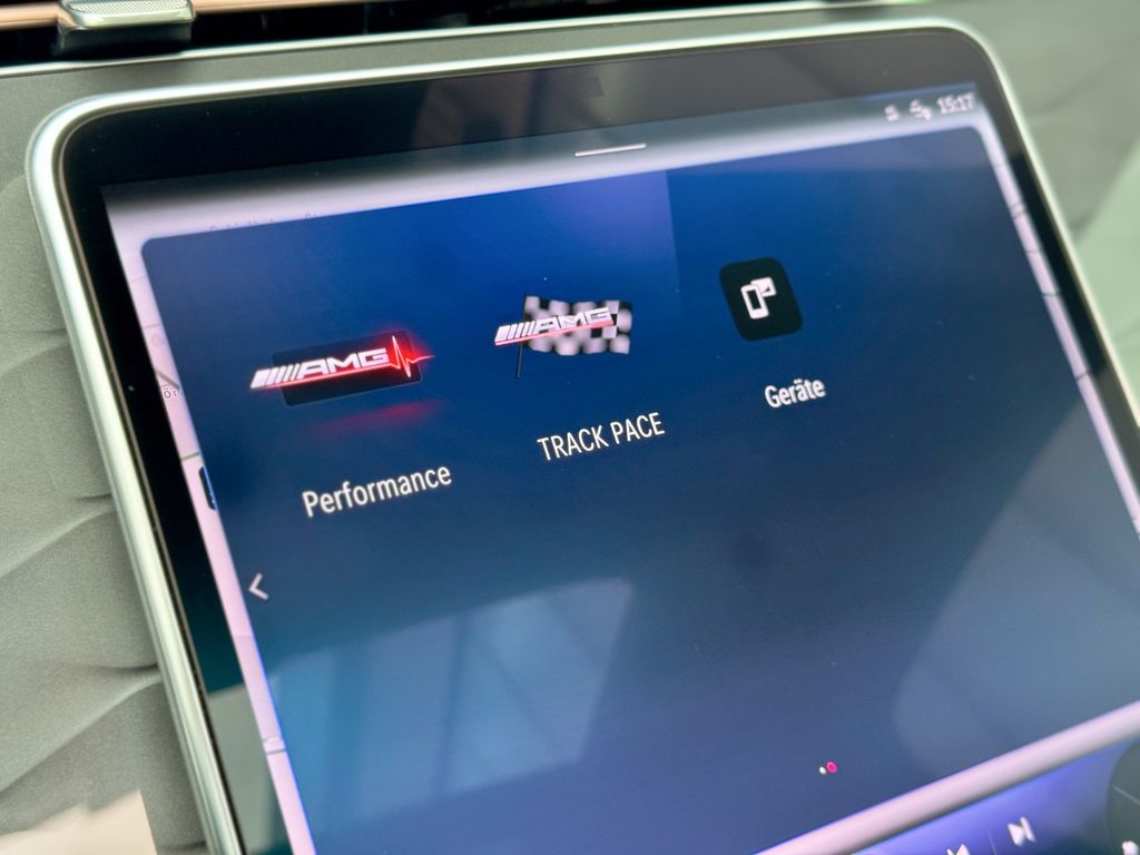 AMG Dynamic-Plus-Paket, AMG Track Package, Ausstattungs-Paket Premium, Feuerlöscher, Innenausstattung mit Zierteile 3D-Relief-Optik, Keramik-Bremsanlage (AMG), Ladekabel für öffentliche Ladesäulen (8,0 m), Lenkrad (AMG Performance, Dinamica), 21" Leichtmetallfelgen (AMG, Y-Speichen), Mittelkonsole Feinstruktur-Optik, Night-Paket (AMG), Panorama-Schiebedach, Lederausstattung Nappa, Vordersitze mit Klimatisierung, Sonderlackierung designo patagonienrot Metallic Bright, Verkleidung / Spoiler hinten schwarz (AMG)