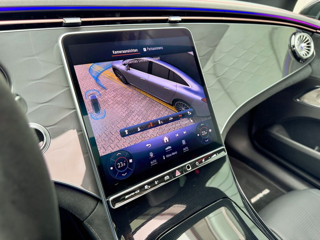 Adaptives Dämpfungssystem Plus, Airbag Beifahrerseite abschaltbar, Airbag Fahrer-/Beifahrerseite, Akustischer Umfeldschutz (Außensound), Aufladesystem Gleichstrom (DC), Aufladesystem Wechselstrom (AC), DAB-Tuner (Radioempfang digital), Digital Light mit Projektionsfunktion, Digitales Instrumenten-Display, Edelstahlpedale Sportdesign, Einstiegsleisten (AMG) beleuchtet, Elektromotor 460 kW (cont. 185 kW), Agility Select / Dynamic Select (Fahrmodusschalter), aktiver Bremsassistent, Geschwindigkeitslimit-Assistent, Fensterheber elektrisch, Fußmatten AMG, Getriebe für Elektrofahrzeug, Getränkehalter vorne (doppelt), Heckleuchten LED, Hinterachslenkung 4,5° Lenkwinkelanpassung, HV-Batterie 90,5 kWh, Infotainment-System Remote & Charging Services Premium, Innenhimmel schwarz, Innenraumlicht-Paket, Isofix-Aufnahmen für Kindersitz an Rücksitz, Knieairbag Fahrerseite, Kommunikationsmodul (LTE Advanced) Mercedes me connect, Kopf-Airbag-System (Windowbag), Ladekabel für öffentliche Ladesäulen, Ladekabel mit Industriestecker, Ladekabel mit Schukostecker, Lendenwirbelstützen vorne elektr. verstellbar, Lenkrad - AMG Lenkradtasten, Media-Display, Multimediasystem (Connect 20 Premium), Navigationssystem, PRE-SAFE-System, Reifen-Reparaturset (Tirefit), Reifendruck-Kontrollsystem, Rücksitzbank geteilt/klappbar (40:20:40), Scheibenwaschanlage beheizt, Seitenairbag (Sidebag) vorne, Seitenscheiben hinten und Heckscheibe abgedunkelt, Service-System MBUX Navigation Premium, Sicherheitsgurte rot, Sitzheizung vorne, Sportsitze vorne, Styling-Paket (AMG / Exterieur), Vorrüstung car sharing, Vorrüstung Multimediasystem MBUX Entertainment Plus