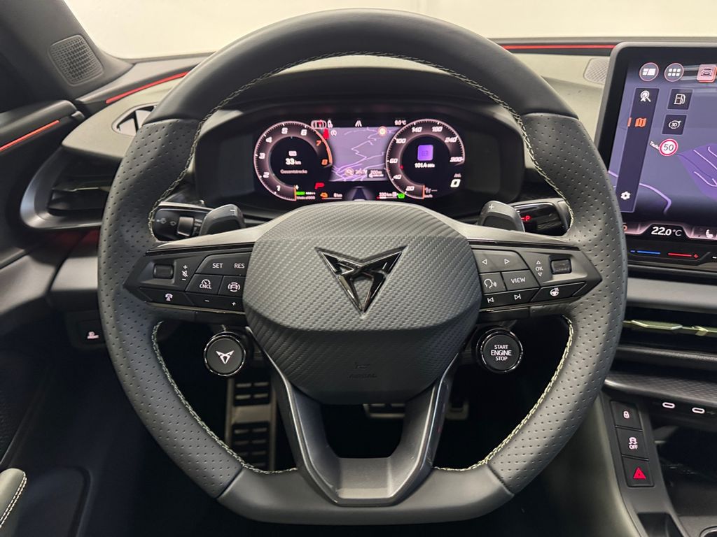 Technik + Sicherheit:Elektron. Stabilitäts-Programm (ESP) mit Bremskraftverstärker elektro-mechanisch; ASR; Kopf-Airbag-System; Airbag Beifahrerseite abschaltbar; Seitenairbag; Airbag Fahrer-/Beifahrerseite; Seitenairbag vorn mitte (Central Airbag); Diebstahl-Warnanlage mit Innenraumüberwachung und Abschleppschutz; Zentralverriegelung / Startanlage Keyless Go (Start-Stop-Knopf); Innenspiegel mit Abblendautomatik; Adaptive Fahrwerksregelung (DCC); Progressivlenkung; Parkbremse elektrisch mit Auto-Hold-Funktion; Fahrprofilauswahl (CUPRA Drive Profile); Wegfahrsperre (elektronisch); Hybrid 200 kW (Motor 1,5 Ltr. - 130 kW TSI eHybrid)