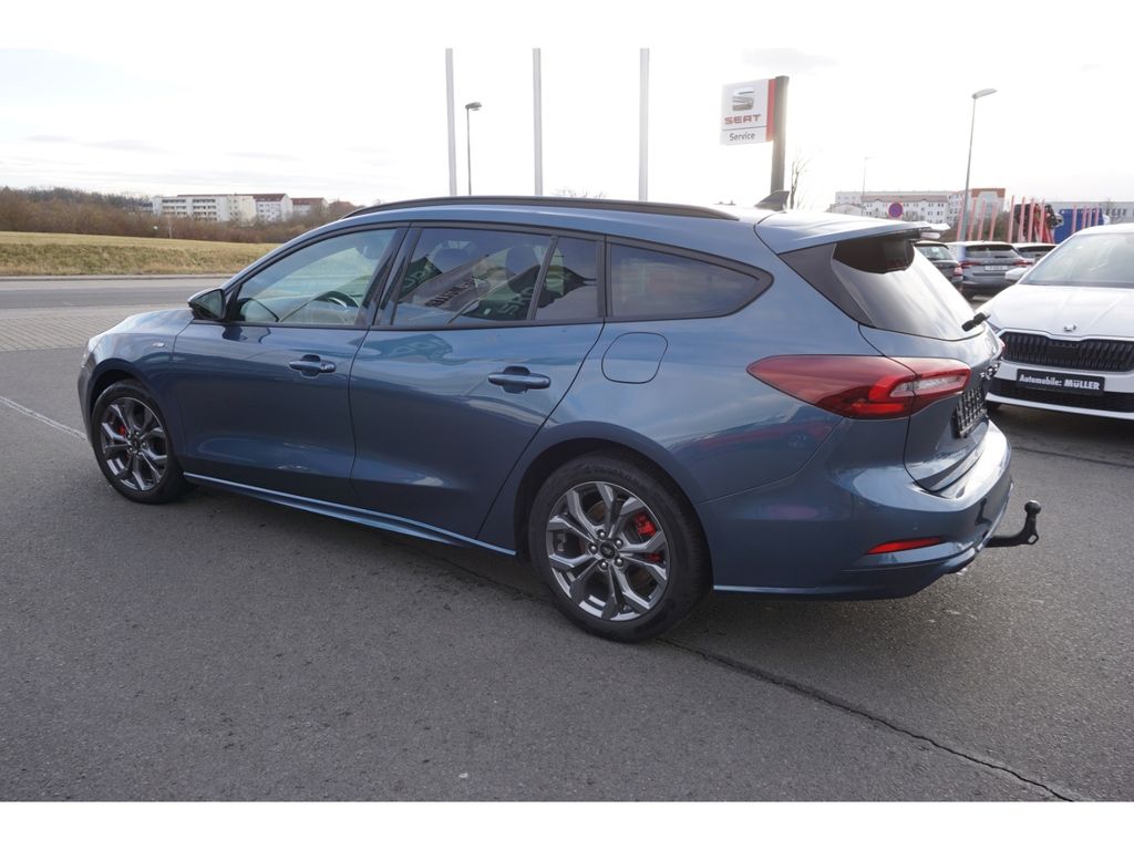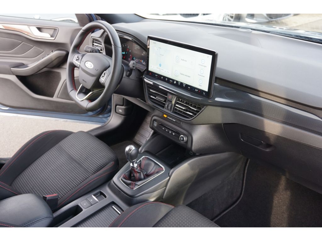 - Weiteres: Lenksäule (Lenkrad) höhen-/längsverstellbar, Scheibenwischer mit Regensensor, Verglasung getönt, Reifendruck-Kontrollsystem, Sportsitze vorn, Rücksitzlehne geteilt/klappbar (60:40), Getriebe 6-Gang - Typ: 6MX65, Heckleuchten LED, Dachreling schwarz, Nebelscheinwerfer LED, Reifen-Reparaturkit, LM-Felgen, Nebelscheinwerfer mit statischem Abbiegelicht, Mild-Hybrid 114 kW (Motor 1,0 Ltr. - 114 kW EcoBoost), Innenraumfilter: Staub- und Pollenfilter, Scheinwerfer-Assistent mit Tag-/Nachtsensor, Ford SYNC 3 mit Navigation, Schwellerverbreiterung, My Key (2. Fahrzeugschlüssel programmierbar), Audio-Navigationssystem Ford SD (mit Ford SYNC 4 und Touchscreen-Farbdisplay), FordPass Connect inkl. eCall, Mittelkonsole Premium, Scheinwerfer LED, Sitz vorn links höhenverstellbar, KeyFree-System, Anhängerkupplung (Kugelkopf abnehmbar), Frontscheibe heizbar, Induktionsladeschale für mobile Endgeräte, Kofferraumdeckel / Heckklappe elektr. betätigt (Öffnung, sensorgesteuert), Family-Paket 3, Anti-Blockier-System (ABS), Außenspiegel elektr. verstell- und heizbar, Antischlupfregelung (ASR), Gepäckraumabdeckung / Rollo, Parkpilotsystem vorn und hinten, Seitenairbag vorn, Airbag Fahrer-/Beifahrerseite, Parkbremse elektrisch mit Auto-Hold-Funktion, Tagfahrlicht LED, Intelligenter Geschwindigkeits-Begrenzer, Rückfahrkamera mit Split View, Metallic-Lackierung, 12V-Steckdose im Laderaum, Adaptive Cruise Control / ACC, Audiobedienung am Lenkrad, Auffahrwarnsystem, Außenspiegel elektr. anklappbar, Ausweich-Assistent, Beifahrerairbag abschaltbar, Berg-Anfahr-Assistent (Hill-Holder), Blinkleuchte in Außenspiegel integriert, Body-Styling-Paket, Bord-/Verbrauchscomputer, Bremsassistent, Bremssättel Rot lackiert, Dachspoiler (große Ausführung) Wagenfarbe, Doppelendrohr Abgasanlage, Elektr. Bremskraftverteilung (EBD), Elektron. Stabilitäts-Programm, Fahrassistenz-Paket, Fahrspur-Pilot, Falschfahrer-Warnfunktion, Farbdisplay (8 Zoll), Farbdisplay für Bordcomputer, Fensterheber elektrisch vorn und hinten mit Komfortschließung, Fußmatten Velours - vorn, Geschwindigkeits-Begrenzeranlage, Getränkehalter vorn, Gurtstraffer, Innenspiegel mit Abblendautomatik, Intelligent Drive Assist, teilautomatisierte Fahrassistenz, Intelligent Protection System (IPS), Isofix-Aufnahmen für Kindersitz, Klimaautomatik 2-Zonen, Kopf-Schulter-Airbag vorn und hinten, Kopfstützen hinten, Laderaumboden verstellbar, Lendenwirbelstütze vorn links, Lenkrad heizbar, Mittelarmlehne hinten, Pedale Aluminium, Post-Collision-System, Power KeyFree-Startfunktion, Pre-Collision-System, Radioempfang Digital (DAB), Schadstoffarm nach Abgasnorm Euro 6d, Schalt-/Wählhebelgriff Aluminium, Schaltpunktanzeige, Scheinwerfer mit Ausschaltverzögerung, Servolenkung elektrisch, Sicherheitssystem SYNC mit automatischem Notruf, Sitzheizung vorn, Sport/Leder-Lenkrad ST, Sport-Fahrwerk, Sprachsteuerung und Bluetooth-Schnittstelle, Spurhalteassistent, Stoßfänger hinten Sport-Design mit Diffusor, Stoßfänger Sport-Ausführung, Styling-Paket ST-Line, Totwinkel-Assistent, Cross Traffic Alert und Notbremsfunktion, Verglasung hinten abgedunkelt, Verkehrsschildassistent
