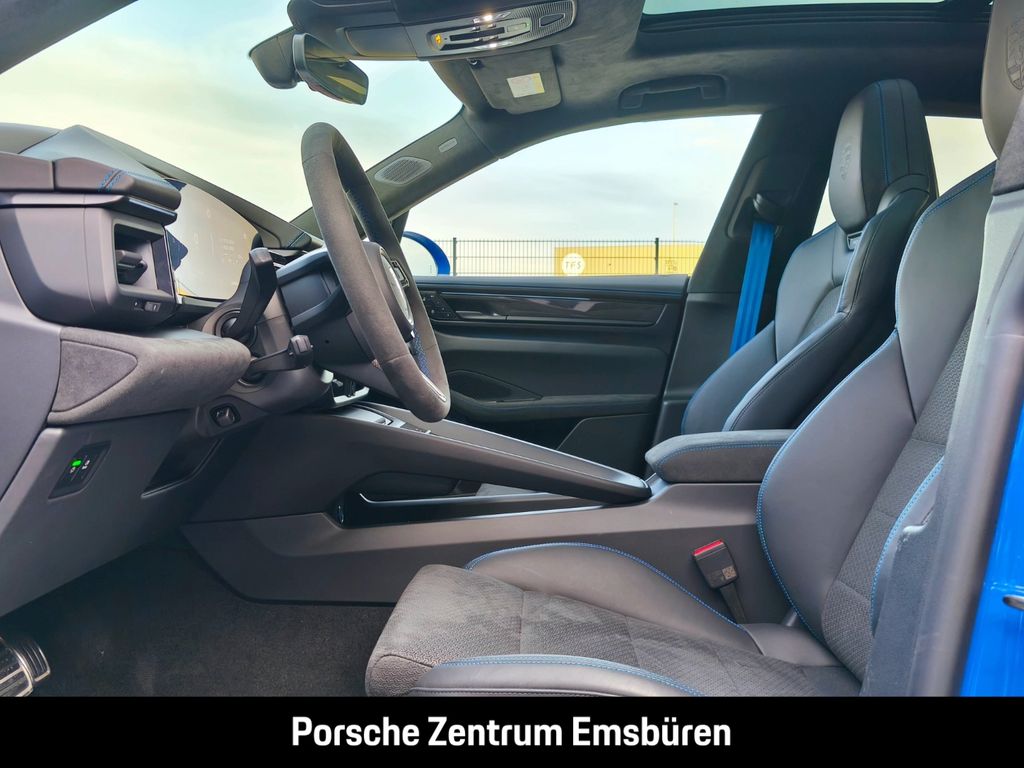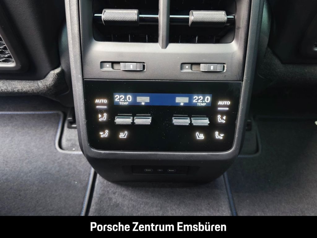 - Weiteres: (3FU) Panorama Dachsystem, (3S2) Dachreling Aluminium schwarz, (1M9) Ausklappbare Anhängezugvorrichtung, (2D1) SportDesign Paket, (6H1) Sideblades lackiert in Exterieurfarbe mit GTS Schriftzug in Schwarz (seidenglanz), (0NC) Modellbezeichnung lackiert in Schwarz (hochglanz), (6FU) Außenspiegel lackiert in Exterieurfarbe, (1N3) Servolenkung Plus, (0N5) Hinterachslenkung, (1ZE) Bremssättel lackiert in Schwarz (hochglanz), (1NV) Räder lackiert in Schwarz (hochglanz), (1G8) Reifendichtmittel mit elektrischem Kompressor, (58H) 22-Zoll RS Spyder Design Räder lackiert in Anthrazitgrau, (2ZV) Multifunktions GT-Sportlenkrad in Race-Tex inkl. Lenkradheizung mit Lenkradblende Carbon, (AU3) Zifferblatt Kompass/Sport Chrono Stoppuhr und Powermeter luganoblau, (4A4) Sitzheizung hinten, (5MH) Interieur-Paket Carbon, (5ZF) Porsche Wappen auf Kopfstützen, (NR2) PORSCHE Schriftzug Vordersitze, beleuchtet, (6NN) Dachhimmel Race-Tex, (QE1) Ablagenpaket, (ALE) Haltegriffe Dachhimmel Race-Tex mit farbigen Ziernähten - luganoblau, (7M8) Türeinstiegsblenden Carbon, beleuchtet, (JH2) Beifahrerdisplay, (9VJ) Burmester® High-End Surround Sound-System, (2W9) Elektrische Ladeklappe, (UD1) LED-Türprojektoren PORSCHE Schriftzug, (4L6) Automatisch abblendende Innen- und Außenspiegel, (4GR) Beheizbare Frontscheibe, (VW1) Privacy-Verglasung, (4E6) Komfortzugang inklusive Porsche Digital Key, (KS5) Augmented Reality Head-Up Display, (9AH) 4-Zonen-Klimaautomatik, (PX6) Automatisiertes Parken mit 2D Surround View, (VC2) Garagentoröffner nach HomeLink® Standard, (QK3) Vorrüstung Porsche Dashcam, (6C4) Seiten-Airbags im Fond, (GJ7) Drive Assist