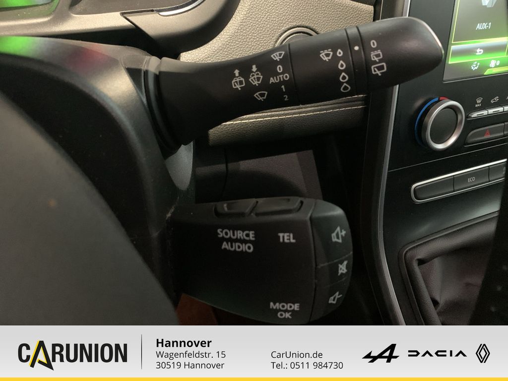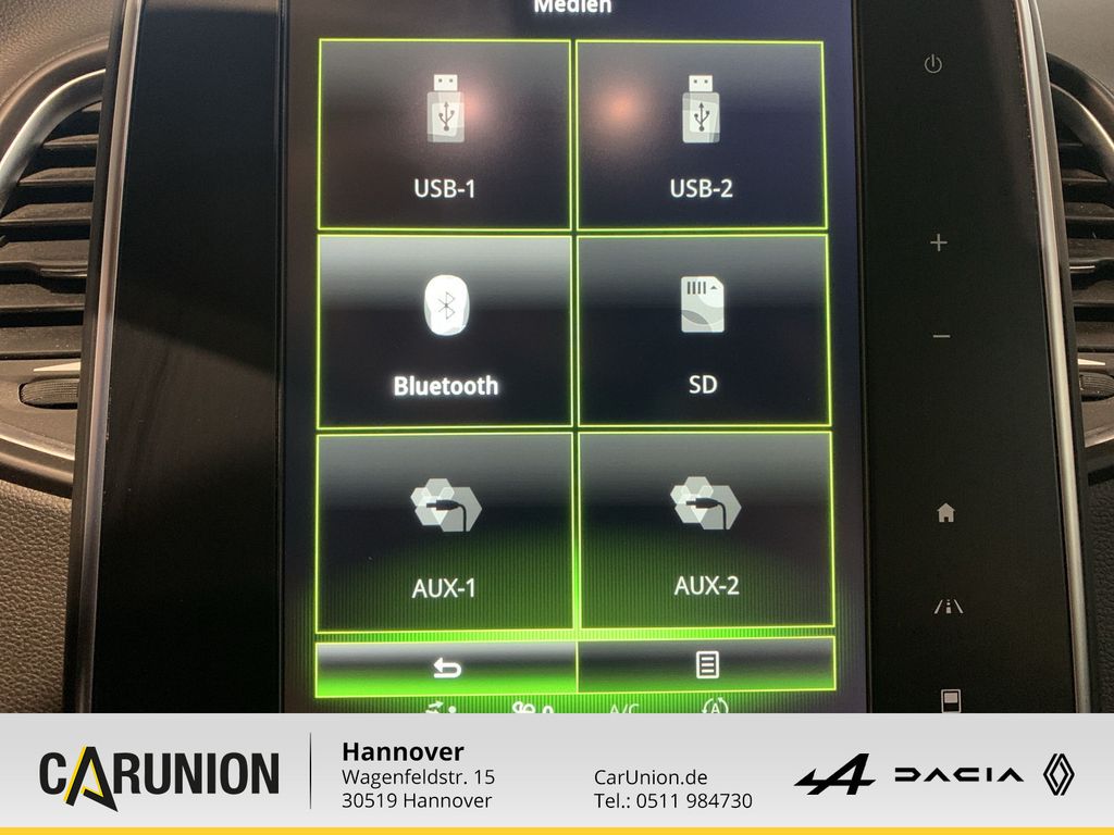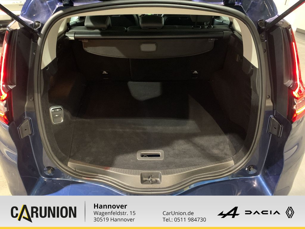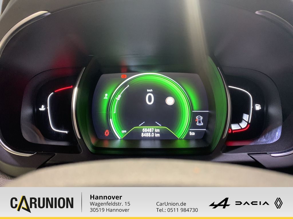 Tempopilot mit Geschwindigkeitsbegrenzer, Reifendruckkontrolle, Schaltpunktanzeige, EFFICIENCY WHEELS mit 20-Zoll-Leichtmetallfelgen (Intens) in, Renault R-LINK 2: integriertes Infotainmentsystem mit 7-Zoll, Müdigkeitserkennung, Einparkhilfe vorne und hinten, Spurhalte-Warner, Verkehrszeichenerkennung, Notbremsassistent mit Fußgängererkennung, Arktis-Wei, Easy-Life-Schubfach mit Kühlfunktion, Trennnetzhalterung, Elektrische Fensterheber vorne u. hinten mit Einklemmschutz, Kopfstützen vorne, Nebelscheinwerfer, Beifahrerairbag ausschaltbar, Alarmanlagenvorrüstung, Sonnenblenden mit beleuchtetem Make-up-Spiegel auf Fahrer- u, Fensterheber vorne elektrisch mit Impulsfunktion und Einklem, Stoffpolsterung mit Seitenwangen in Lederoptik in Anthrazit, Getönte Scheiben, EFFICIENCY WHEELS mit 20-Zoll-Leichtmetallfelgen, Kopfstützen hinten, Lederlenkrad, ABS, 12 V-Steckdose in der Mittelarmlehne, Bremsassistent, Sonnenjalousien an den hinteren Seitenfenstern, Easy-Life-Tablets Beifahrersitz: Lendenwirbelstütze umklap, Front- Seiten- und Window-Airbags, 2-Zonen-Klimaautomatik, Innenrückspiegel automatisch abblendend, Außenspiegel zusätzlich elektrisch anklappbar, Dachreling, Fahrer- und Beifahrerairbag, ISOFIX Kindersitzvorrüstung, Verschiebbare Mittelkonsole Vario-Modul mit Armlehne, Modulares One-Touch-Folding, Reifenreparaturset, MULTI-SENSE mit unterschiedlichen Fahrmodi, Standardlackierung ohne Aufpreis