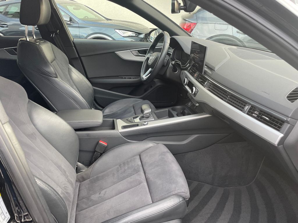 Airbag Beifahrerseite abschaltbar, Audi connect (Notruf- und Assistance-System), Audi Drive Select, Außenspiegel Wagenfarbe, Blinkleuchten LED in Außenspiegel integriert, Dachkantenspoiler, Dachreling schwarz, Einstiegsleisten mit Aluminiumeinlage und Schriftzug, beleuchtet, Fahrassistenz-System: City-Notbremsfunktion (Audi pre sense City), Fensterzierleisten schwarz, Frontscheibe Akustikglas, Funkschlüssel, Fußmatten Velours, Geschwindigkeits-Begrenzeranlage, Heckdiffusor, Heckleuchten LED, Innenausstattung: Dekoreinlagen Akzentteile in der Armaturentafel schwarz matt, Innenausstattung: Dekoreinlagen Diamantlack silbergrau, Isofix-Aufnahmen für Kindersitz, Karosserie: 4-türig, Kopf-Airbag-System (Sideguard), Kraftstofftank: 54 Ltr., Mild-Hybrid 150 kW (Motor 2,0 Ltr. - 150 kW 16V TFSI), Mild-Hybrid-Technologie, Modellpflege, Multi-Media-Interface MMI Basic Plus / MMI Radio Plus, Nichtraucher-Paket, Otto-Partikelfilter (OPF), Radioempfang digital (DAB), Reifen-Reparaturkit, Reifendruck-Kontrollsystem, Rücksitzlehne geteilt/klappbar (40:20:40), Schadstoffarm nach Abgasnorm Euro 6d, Scheibenwaschdüsen heizbar, Scheinwerfer Basis (LED - Technologie), Seitenairbag vorn, Sitze vorn manuell einstellbar, Sport-Fahrwerk, Start/Stop-Anlage, Stoßfänger Sport-Design (S-line), Universal-Schnittstelle Bluetooth, Wendeladeboden (Ladeboden)