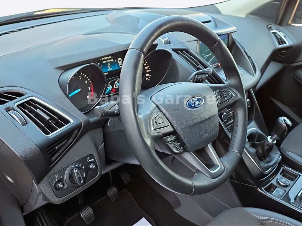 Ambiente-Beleuchtung (Multicolor-LED), Antischlupfregelung (ASR), Audio-Navigationssystem Ford SD (mit Ford SYNC), Audiobedienung am Lenkrad, Außenspiegel elektr. verstell- und heizbar, Bordcomputer, Brillenfach in Dachhimmel / Dachkonsole integriert, Chromeinfassung Seitenscheiben, Dachspoiler Wagenfarbe, Dimmer Instrumentenbeleuchtung, Einstiegsleisten (Edelstahl), Elektr. Bremskraftverteilung (EBD), Fahrassistenz-System: Berganfahr-Assistent (Hill-Holder), Fahrassistenz-System: Notbrems-Assistent, Fensterheber elektrisch vorn + hinten mit Komfortschließung, Fußmatten Velours, Innenausstattung: Aluminium-Dekor, Innenraumfilter: Staub- und Pollenfilter, Intelligent Protection System (IPS), Isofix-Aufnahmen für Kindersitz, Karosserie: 5-türig, Klimaautomatik 2-Zonen, Kühlergrill silber, Lendenwirbelstütze Sitz vorn links, Lendenwirbelstütze Sitz vorn rechts, Lenksäule (Lenkrad) höhen-/längsverstellbar, Leuchtweitenregelung, LM-Felgen, Mittelarmlehne hinten, Modellpflege, Motor 1,5 Ltr. - 110 kW EcoBoost KAT, My Key (2. Fahrzeugschlüssel programmierbar), Otto-Partikelfilter (OPF), Parkbremse elektrisch, Radstand 2690 mm, Reifen-Reparaturkit, Reifendruck-Kontrollsystem, Rücksitzlehne geteilt/klappbar (60:40), Schadstoffarm nach Abgasnorm Euro 6d-TEMP, Schalt-/Wählhebelgriff Leder, Schaltpunktanzeige, Sicht-Paket, Sitz vorn links höhenverstellbar, Sitzbezug / Polsterung: Stoff/Leder, Sitzheizung vorn, Sonnenblende links mit Spiegel (beleuchtet), Sonnenblende rechts mit Spiegel (beleuchtet), Sportsitze vorn, Start/Stop-Anlage, Steckdose (12V-Anschluß) im Koffer-/Laderaum, Türgriffe außen Wagenfarbe, Unterfahrschutz, Unterfahrschutz hinten, Verglasung getönt, Warnanlage für Sicherheitsgurte hinten, Zierleisten unterhalb Seitenscheiben Chrom-Dekor
