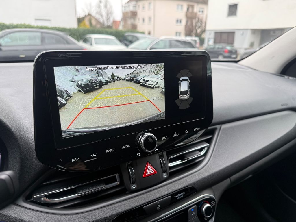 3. Bremsleuchte, 6 Lautsprecher, Ablagebox / Stauraum unter Kofferraumboden, Ablagetasche an Vordersitzlehnen, Airbag Beifahrerseite, Airbag Beifahrerseite abschaltbar, Airbag Fahrerseite, Aktives Bremslicht (ESS), Audiosystem: Radio RDS, Außenspiegel elektr. anklappbar, Außenspiegel elektr. verstell- und heizbar, beide, Außenspiegel mit Umfeldleuchte, Außenspiegel schwarz glänzend, Blinkleuchte in Außenspiegel integriert, Bremsassistent, Einschaltautomatik für Fahrlicht / Lichtsensor, Elektr. Bremskraftverteilung, Elektron. Stabilitätskontrolle (ESC) mit Bremsassistent, Fahrassistenz-System: Aufmerksamkeits-Assistent, Fahrassistenz-System: Autonome Notbremsfunktion inkl. Frontkollisionswarnung (FCA), Fahrassistenz-System: Berganfahrhilfe, Fahrassistenz-System: Einparkhilfe vorn und hinten, Fahrassistenz-System: Fahrprofilauswahl (Drive Mode), Fahrassistenz-System: Fernlichtassistent, Fahrassistenz-System: Sicherheitssystem mit automatischem Notruf (ERA GLONASS / eCall), Fensterheber elektrisch hinten, Fensterheber elektrisch vorn und hinten, mit Auf-/Ab-Automatik, Fensterrahmen Zierleisten schwarz glänzend, Freisprecheinrichtung Bluetooth, Frontscheibe mit Bandfilter oben, Frontscheibe wärmedämmend, Gegenlenkunterstützung (Vehicle Stability Management, VSM), Gepäck-/Laderaumleuchte, Gepäcknetz im Koffer-/Laderaum, Gepäckraumabdeckung / Rollo, Getriebe 6-Gang - mit automatisierter Kupplung (iMT), Getränkehalter hinten, Getränkehalter vorn, Gurtstraffer, Heckleuchten LED, Heckscheibe heizbar, Induktionsladeschale für Smartphone, Isofix-Aufnahmen für Kindersitz, Karosserie: 5-türig, Klimaautomatik 2-Zonen, Komfort-Paket, Kopf-Airbag-System, Kopfstützen hinten verstellbar, Kühlergrill schwarz (glanzlackiert), Lendenwirbelstütze Sitz vorn links, elektr. verstellbar, Lenkrad heizbar, Leseleuchte, LM-Felgen, Mild-Hybrid 100 kW (Motor 1,6 Ltr. - 100 kW CRDi), Mittelarmlehne hinten mit Getränkehalter, Modellpflege, Motorhaubenisolierung, Navigations-Paket, Radioempfang digital (DAB+), Reifen-Reparaturkit, Reifendruck-Kontrollsystem, Rückfahrkamera, Rücksitzlehne geteilt/klappbar, Schadstoffarm nach Abgasnorm Euro 6d, Schalt-/Wählhebelgriff Leder, Scheibenbeschlagerkennung / Regelung, Scheinwerfer LED, Seitenairbag vorn, Seitenscheiben ab B-Säule abgedunkelt, Sicherheitsgurte vorn höhenverstellbar, Sitz vorn links höhenverstellbar, Sitz vorn rechts höhenverstellbar, Sitzbezug / Polsterung: Stoff, Sitzheizung vorn, Smartphone Schnittstelle (Apple CarPlay & Android Auto), Sonnenblenden mit Spiegel (beleuchtet), Start-Stop-Knopf, Start/Stop-Anlage, Steckdose (12V-Anschluß) im Koffer-/Laderaum, Stoßfänger Wagenfarbe, Türgriffe außen Wagenfarbe, Türgriffe innen verchromt, USB-Anschluss + AUX-IN-Anschluss, Verglasung getönt, Warnanlage für Sicherheitsgurte, Fahrer-/Beifahrerseite