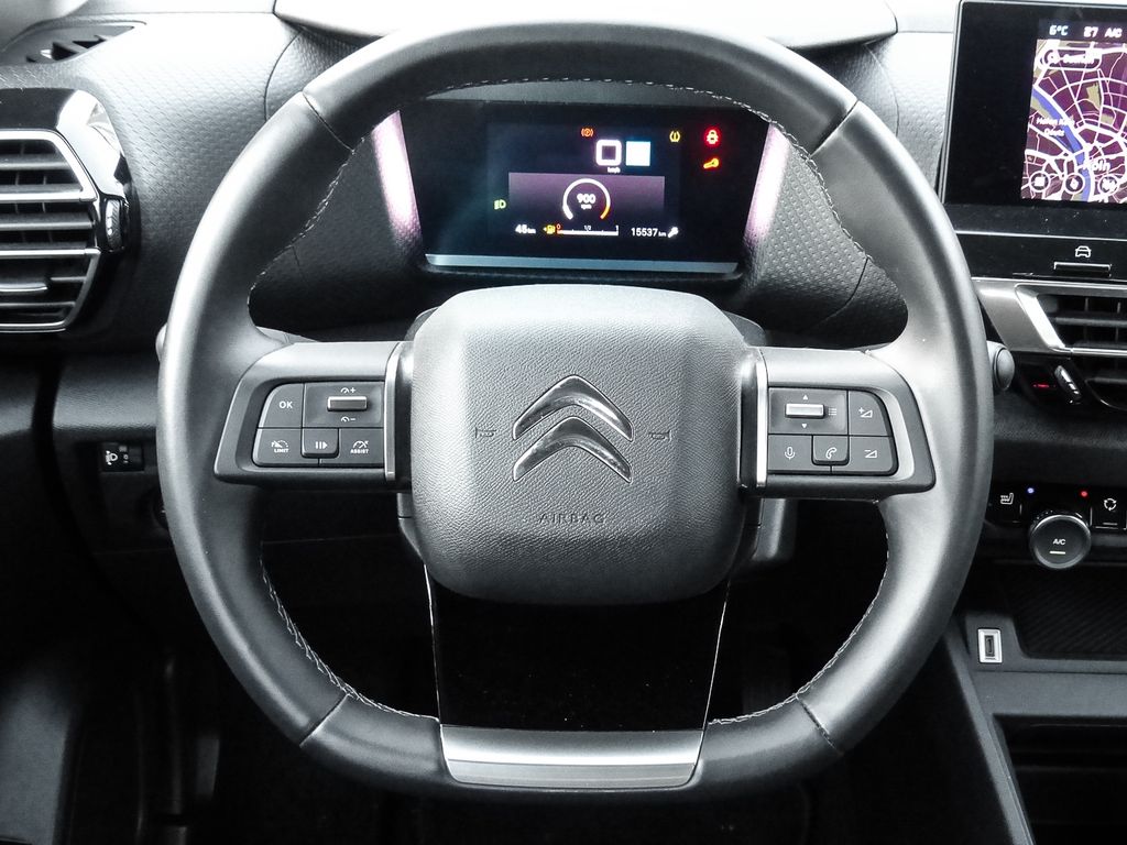 - Weiteres: BORDCOMPUTER, Reifendruck-Kontrollsystem, Scheibenwischer mit Regensensor, Isofix-Aufnahmen für Kindersitz an Rücksitz, Reifen-Reparaturkit, Getriebe 6-Gang, Seitenscheiben hinten und Heckscheibe dunkel getönt, Head-up-Display, Nebelscheinwerfer LED mit Abbiegelicht, Lendenwirbelstütze manuell verstellbar, Audiosystem: Digitalradio DAB mit Touchscreen, Schadstoffarm nach Abgasnorm Euro 6d, Kamerasystem Vision 360 Grad, Sitzbezug / Polsterung: Leder / Stoff Metropolitan Grey, Scheinwerfer Full-LED, Audio-Navigationssystem: Connect My Drive Plus, Frontscheibe heizbar, Sonderlackierung Platinum-Grau Metallic, LM-Felgen 7x18 (Aeroblade, glanzgedreht), Anti-Blockier-System (ABS), Tagfahrlicht LED, Fensterheber elektrisch vorn, Seitenairbag vorn, Kopf-Airbag-System hinten, Kopf-Airbag-System, Antischlupfregelung (ASR), Airbag Beifahrerseite, Airbag Fahrerseite, Rücksitzbank / Lehne klappbar 1/3-2/3 (nicht verschiebbar), Otto-Partikelfilter (GPF), Aktiver Notbrems-Assistent (Active Safety Brake), aktiver Spurassistent (Lenkunterstützung), Aufmerksamkeits-Assistent (Müdigkeitserkennungs-Sensor), Außenspiegel elektr. anklappbar, Beifahrerairbag abschaltbar, Berganfahrhilfe, Citroen Smart Pad Universal, Color-Paket Anodised-Blau, Connecting-Box, Drive-Assist-Paket, Einschaltautomatik für Fahrlicht, Elektron. Stabilitäts-Programm (ESP), Fensterheber elektrisch vorn und hinten, Fernlichtassistent, Freisprechanlage Bluetooth, Geschwindigkeits-Begrenzeranlage, Innenspiegel mit Abblendautomatik, Kälte-Paket, Keyless Entry, Klimaautomatik Fahrer-/Beifahrerseite getrennt regelbar, Kollisionswarnsystem, Lederlenkrad, Lenkrad heizbar, Lenksäule höhen-/längsverstellbar, Motor 1,2 Ltr. - 96 kW 12V e-THP / PureTech, Notruf- und Assistance-System (CITROEN Connect), Parkbremse elektrisch, Sicherheits-Paket Plus, Sitzheizung vorn, Sitzhöhenverstellung, Sitzhöhenverstellung Fahrersitz, Stop-Start-Anlage, Style-Paket, Totwinkel-Assistent mit Einparkhilfe vorn und hinten, Verkehrszeichenerkennung, Verkehrszeichenerkennung Plus (Geschwindigkeits-Regel-/Begrenzeranlage)