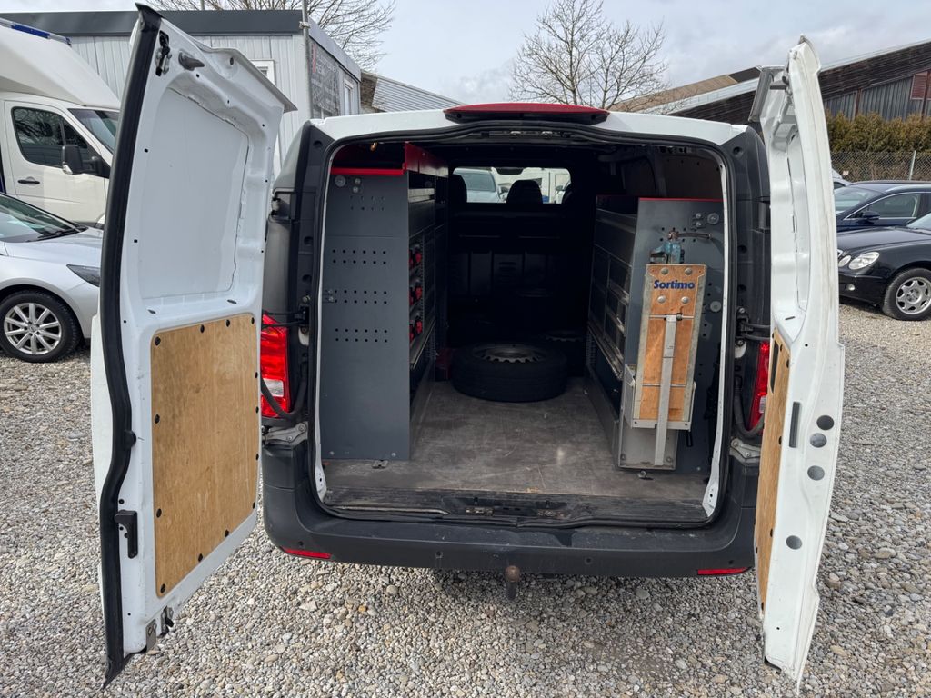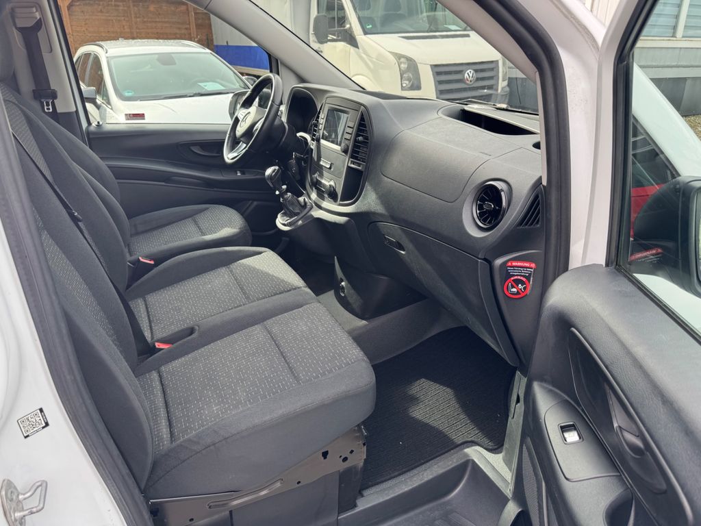 3-Tasten-Fernbedienung für Zentralverriegelung, 3. Bremsleuchte, Adaptives Bremslicht, Airbag Beifahrerseite, Airbag Fahrerseite, Anfahrhilfe (Berganfahr-Assistent), Außenspiegel asphärisch, beide, Außenspiegel mech. von innen verstellbar, beide, Außentemperaturanzeige, Befestigungsschienen für Dachträger, BlueEfficiency-Paket, Bremsassistent, Design- und Ausstattungslinie Base, Fahrassistenz-System: Attention-Assist (Müdigkeitserkennungs-Sensor), Fahrassistenz-System: Pannenmanagement, Fahrassistenz-System: Seitenwind-Assistent, Frontscheibe mit Scheibenantenne, Generator 200 A, Getränkehalter vorn, Gurtstraffer, Handschuhfach abschließbar, Karosserie/Aufbau: extra lang, Karosserie/Aufbau: Kasten Standard, Kommunikationsmodul (LTE) für digitale Dienste, Lastenverankerung / Verzurrösen, Mercedes-Benz Notrufsystem, Modellpflege, Motor 2,0 Ltr. - 120 kW CDI KAT, Nebelschlussleuchte, Radstand 3430 mm, Reifen 205/65 R16C 103/101 T, Schadstoffarm nach Abgasnorm Euro 6d-TEMP, Schiebetür Lade-/Fahrgastraum rechts, Sicherheitsgurt-System mit Warnanlage (Fahrer-/Beifahrerseite), Sitzbezug / Polsterung: Stoff, Stahlfelgen 6,5x16, Verkleidung Fenstersäulen, Verkleidung im Lade-/FG-Raum: Hartfaser halbhoch, Wartungsintervall-Anzeige Assyst, Zul. Gesamtgewicht 2,80 t