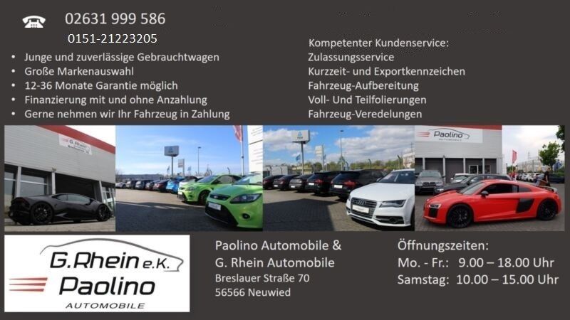 Trotz sorgfältiger Erstellung der Fahrzeuganzeigen können Eingabefehler, Übermittlungsfehler oder Änderungen nicht ausgeschlossen werden. Alle Angaben zu Ausstattung, technischen Daten, Beschreibungen und Preisen erfolgen daher ohne Gewähr auf Vollständigkeit und Richtigkeit. Die Fahrzeugbeschreibung dient ausschließlich der allgemeinen Identifizierung des Fahrzeugs und stellt keine zugesicherte Eigenschaft im kaufrechtlichen Sinne dar. Maßgeblich sind ausschließlich die Vereinbarungen im Kaufvertrag. Die Ausstattung und Funktionen sind vom Käufer vor Ort zu prüfen.