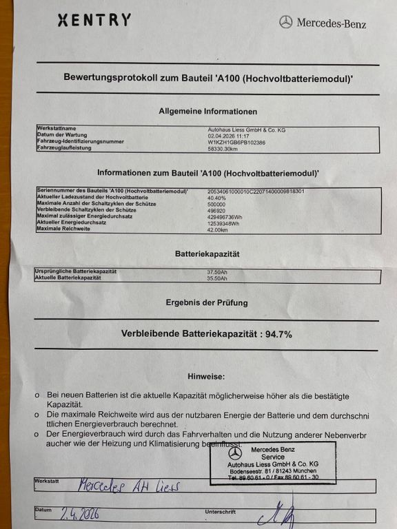 Fahrzeug ist aus 1. Hand und Service gepflegt bei Mercedes Benz, letzter Inspektion war bei 58.320 km (02/2026).- You can reach us directly at the following numbers