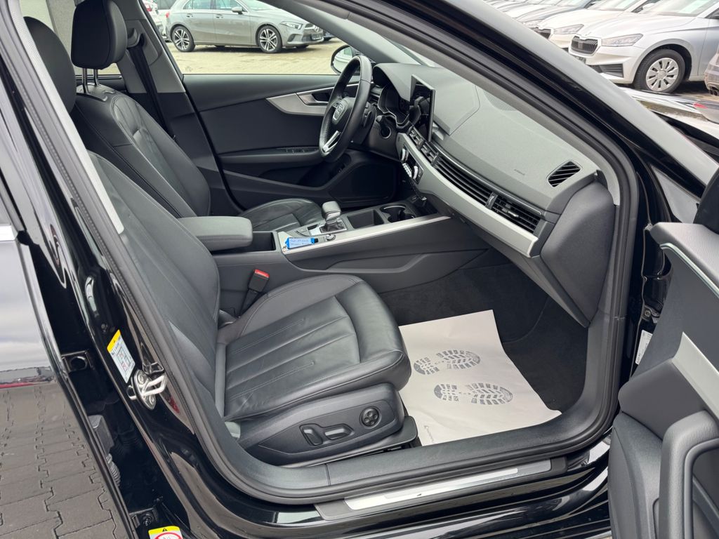 Dieser gepflegte Audi A4 Kombi aus 2023 präsentiert sich in elegantem Schwarz mit nur einem Vorbesitzer und lückenloser Servicehistorie. Der 150 PS starke Benzinmotor mit 1984 ccm Hubraum und Frontantrieb bietet eine ausgewogene Kombination aus Leistung und Effizienz. Die Ausstattung überzeugt mit 3-Zonen-Klimaautomatik, Ledersitzen in Schwarz und umfangreichen Assistenzsystemen wie adaptivem Tempomat, Spurhalteassistent und Kollisionsvermeidung. Das digitale Cockpit mit Navigationssystem, Apple CarPlay und Android Auto sorgt für moderne Konnektivität. Besonders praktisch sind die elektrische Heckklappe, Dachreling und Gepäckraumtrenngitter. Mit der grünen Umweltplakette (Euro 6d) ist dieses Fahrzeug zukunftssicher unterwegs.- LED-Scheinwerfer mit Fernlichtassistent und Tagfahrlicht