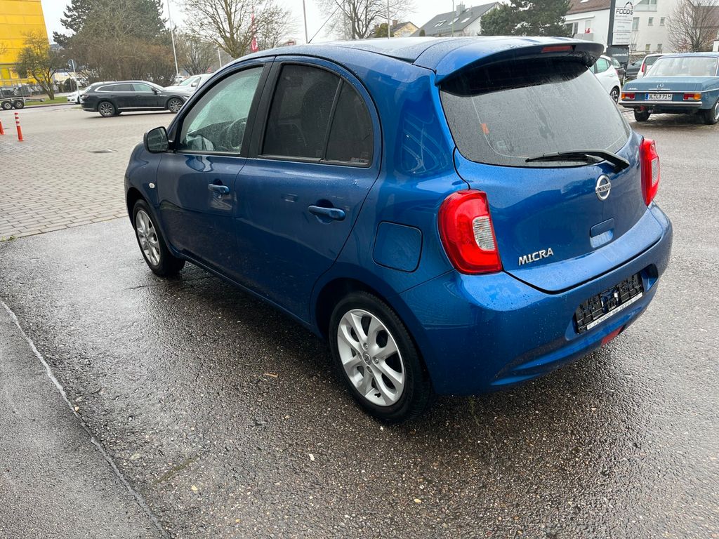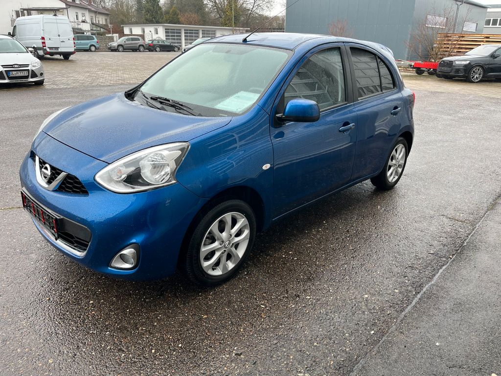 Airbag Beifahrerseite abschaltbar, Airbag Fahrer-/Beifahrerseite und Seitenairbag vorn, Audio-/Bordcomputerbedienung am Lenkrad, Audiosystem: Radio mit CD-Player, Außenspiegel elektr. verstellbar, Außenspiegel Wagenfarbe, Bluetooth-Schnittstelle, Bremsassistent (Nissan Brake-Assist), Dachspoiler, Fernentriegelung Tankklappe, Freisprechanlage Bluetooth, Frontscheibe Verbundglas, Gepäckraumabdeckung / Rollo, Heckscheibe heizbar, Innenspiegel abblendbar, Isofix-Aufnahmen für Kindersitz, Karosserie: 5-türig, Kopf-Airbag-System, Kopfstützen hinten verstellbar (links/rechts und mitte), Lenksäule (Lenkrad) höhenverstellbar, Leseleuchte vorn, LM-Felgen, Modellpflege, Motor 1,2 Ltr. - 59 kW KAT, Reifendruck-Kontrollsystem, Reserverad als Notrad, Rücksitz geteilt/klappbar, Schadstoffarm nach Abgasnorm Euro 6, Schalt-/Wählhebelgriff Leder, Sitz vorn links höhenverstellbar, Sitzbezug / Polsterung: Stoff, Sonnenblenden mit Spiegel, Steckdose (12V-Anschluß) in Mittelkonsole, Stoßfänger Wagenfarbe, Türverkleidung mit Stoffeinsatz, Verglasung getönt