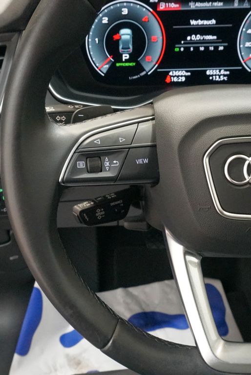 Ablage- und Gepäckraum-Paket, Ambiente-Beleuchtung, Assistenz-Paket Stadt mit Assistenz-Paket Parken, Assistenz-Paket Tour, Audi connect (Internetbasierende Dienste), Audi Smartphone Interface, Außenspiegel elektr. verstell-, heiz- und anklappbar, mit Abblendautomatik und Memory, Business-Paket, Dachhimmel Stoff, schwarz, Dachreling schwarz, Harnstofftank (SCR): 24 Ltr., Kindersicherheits-Paket, Komfort-Klimaautomatik 3-Zonen, Lendenwirbelstützen vorn, elektr. verstellbar, Metallic-Lackierung, Panoramadach vorn elektrisch, hinten fest, Rücksitzlehne geteilt/klappbar, verschiebbar (40:20:40), Seitenairbag hinten, Sitzbezug / Polsterung: Mikrofaser / Leder Kombination, Sitze vorn elektr. verstellbar (links mit Memory), Sound-System DSP / Audi Sound-System, Sportsitze vorn, Verglasung hinten abgedunkelt (Privacyverglasung)