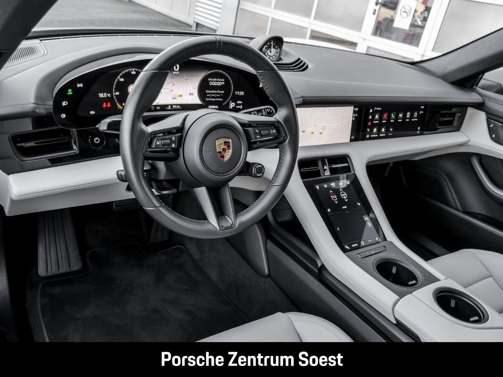 - Weiteres: (2JZ) Offroad Design Paket inkl. Einleger lackiert in Schwarz (hochglanz), (3FG) Panorama-Festglasdach, (3S2) Dachreling Aluminium schwarz, (0NA) Entfall Modellbezeichnung, (GM3) Porsche Electric Sport Sound, (8LH) Sport Chrono Paket, (1N3) Servolenkung Plus, (1NX) Räder lackiert in Schwarz (seidenglanz), (54C) 21-Zoll Cross Turismo Design Räder, (4A3) Sitzheizung vorne, (2PJ) Lenkradheizung (i.V.m. Sport Chrono Paket und Lederausstattungen), (JH1) Beifahrerdisplay, (76H) Ladekabel (Mode 3), (73J) Netzkabel für Industriesteckdose rot (400 V, 16 A, 5 Pin), (4L6) Innenspiegel & Außenspiegel automatisch abblendend, (6XV) Elektrisch anklappbare Außenspiegel, (VW1) Privacy-Verglasung, (79J) Spurwechselassistent, (QK3) Vorrüstung Porsche Dashcam vorne und hinten, (KA6) ParkAssistent inklusive Surround View, (QQ1) Ambientebeleuchtung, (P4S) Porsche InnoDrive inklusive Abstandsregeltempostat, Antriebsart: Allradantrieb, Scheibenwischer mit Regensensor, Isofix-Aufnahmen für Kindersitz an Rücksitz, Außenspiegel elektr. verstell- und heizbar, beide, Porsche Traction Management (PTM), Reifendruck-Kontrollsystem, Rücksitzlehne geteilt/klappbar (60:40), Sitze vorn elektr. verstellbar, Radioempfang digital (DAB+), Innenraumfilter: Aktivkohlefilter (Geruchsfilter), Elektromotor 350 kW (cont. 120 kW), Sound-Package Plus, Rückfahrkamera, Geschwindigkeits-Regelanlage (Tempomat) mit Abstandsregelung, Ambiente-Beleuchtung, Dachreling, Lenkrad heizbar (GT Sport / Leder) mit Multifunktion und Schaltfunktion, Lenkrad (GT Sport - Leder), LM-Felgen (schwarz, seidenglänzend lackiert), LM-Felgen vorn/hinten: 9,5x21 / 11,5x21 (Cross Turismo Design Rad), Vorrüstung Porsche Dashcam, Airbag Fahrer-/Beifahrerseite, Anti-Blockier-System (ABS), Knieairbag, Wegfahrsperre, Kopf-Airbag-System (Curtain-Airbag), Seitenairbag vorn, Multimediabuchse AUX-IN und USB-Schnittstelle, Lenksäule (Lenkrad) verstellbar, Connect (Bluetooth, Apple CarPlay), Frontblende Brilliant-Silber, Panorama-Glasdach (vollverglaste Dachfläche), Ablage-Paket, Aktive Motorhaube, Außenspiegel elektr. anklappbar, Beifahrer-Display, Bremssättel Rot lackiert, Diebstahl-Warnanlage mit Innenraumüberwachung, Einschaltautomatik für Fahrlicht, Frontkamera, Fußgänger-Schutzsystem, Gepäckraum-Trennnetz, Hauptscheinwerfer LED, Heckdiffusor lackiert, Heckklappe mit automatischem Öffnungs- und Schließsystem, Heckscheibe heizbar, Heckspoiler adaptiv ausfahrbar (2-Wege), HiFi-Lautsprechersystem (10 Lautsprecher), Interieur-Paket: schwarz, Interieur-Zusatzpaket: Innenraumbeleuchtung LED, Klimaautomatik 2-Zonen, Kollisionswarnsystem mit Bremseingriff und Fußgängererkennung, Komfortsitze vorn, Ladevorrichtung On-Board-Lader (150 kW), Ladevorrichtung On-Board-Lader (bis 11 kW), Motorsound-System (Porsche Electric Sport Sound), Multikollisionsbremse (Multi Collision Brake), Off-Road-Design-Paket, Park-Assistent vorn und hinten inkl. Rückfahrkamera und Surround View, Parkbremse elektrisch, Polster Teilleder, Porsche Active Suspension Management (PASM), Porsche Communications Management (PCM) inkl. Online - Navigationsmodul, Porsche InnoDrive inkl. Abstandsregeltempomat, Porsche Stability Management (PSM)