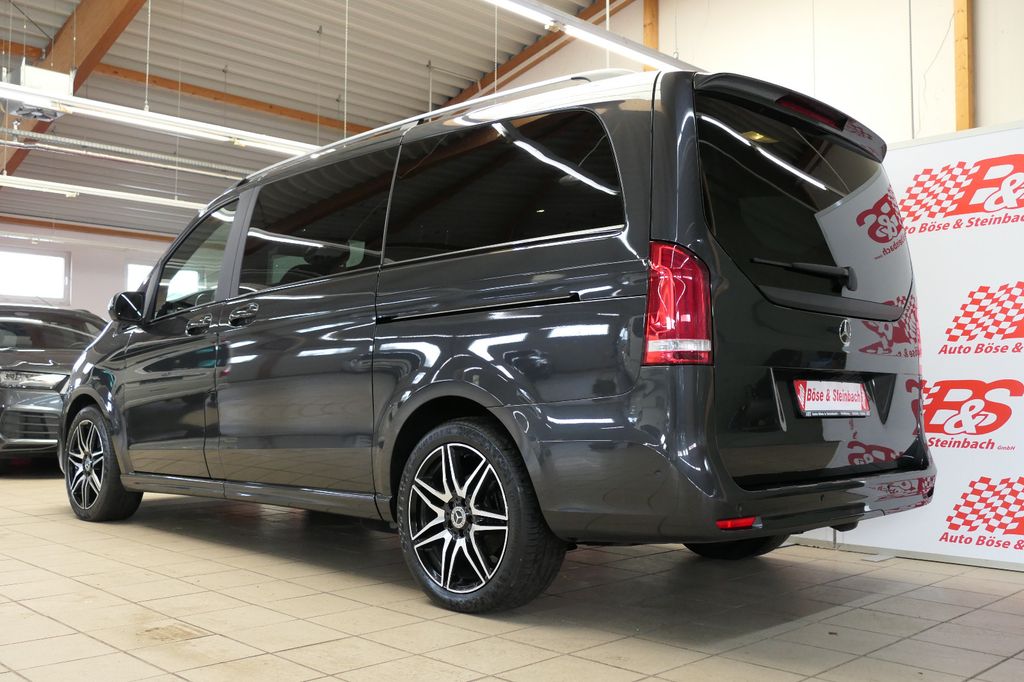 Ablagenetz an Vordersitzlehne links, Adaptives Bremslicht, Airbag Beifahrerseite, Airbag Fahrerseite, Ambiente-Beleuchtung, Anfahrhilfe (Berganfahr-Assistent), Anhängerkupplung: Elektrik für Anhängersteckdose, Anzeige für Waschwasserstand, Armlehnen Fahrgastraum, Auflastung auf 3,1 t, Außenspiegel asphärisch, beide, Außenspiegel elektr. verstell- und heizbar, Außenspiegel mit integrierter Blinkleuchte, Außentemperaturanzeige, Avantgarde Edition, Beleuchtung im Haltegriff Fond mit Lesespot, BlueEfficiency-Paket, Teppich im Fahrerraum und im Fahrgastraum, Bremsassistent, Bremssystem mit ABS+ASR, DAB-Tuner (Radioempfang digital), Design- und Ausstattungslinie Avantgarde Edition, Direktlenkung mit variabler Lenkkraft-Unterstützung, Einschaltautomatik für Fahrlicht, Einstiegsleisten mit Schriftzug Mercedes-Benz (beleuchtet), Einstiegsleuchten, Fahrassistenz-Paket, Attention-Assist (Müdigkeitserkennungs-Sensor), Pannenmanagement, Seitenwind-Assistent, Verkehrszeichenerkennung, Fenster für hintere Heckklappe mit Wisch-/Waschanlage, Fenster im Lade-/FG-Raum: - feststehend, hinten, Fenster im Lade-/FG-Raum: - feststehend, vorn links, Fenster im Lade-/FG-Raum: - feststehend, vorn rechts, Feststellbremse elektrisch, Feststeller Schiebetür (Aktiv), Getriebe Automatik GTronic - (9-Stufen), Gurtstraffer, Handschuhfach abschließbar, Harnstofftank (AdBlue): 24 Ltr., Heckklappe mit automatischem Öffnungs- und Schließsystem, Heckscheibe aufstellbar, Heckscheibe heizbar, Intelligent Light System LED, Karosserie/Aufbau: Bus lang, Kindersicherung, Klimaautomatik Fond (Tempmatik), Kombiinstrument mit Farbdisplay, Komfort-Klimaautomatik Thermotronik, Komfortbeleuchtung im Fahrgast-/Laderaum, Kommunikationsmodul Mercedes me connect (Internetbasierende Dienste), Kopf-Airbag-System (Windowbag), Kopf-Schulter-Airbag (Thoraxbag) Fahrer-/Beifahrerseite, Lenkrad (Lenksäule mech. verstellbar), Lenkrad mit Multifunktion inkl. Reiserechner, Mercedes-Benz Notrufsystem, Metallic-Lackierung, Mittelkonsole vorn mit Rollo / Ablage, Modellpflege, Motor 2,0 Ltr. - 174 kW CDI KAT, Multimediasystem MBUX (Touchscreen 10,25"), Navigationssystem für Multimediasystem MBUX, Park-Paket mit 360° Kamera, PKW-Zulassung, PTC Heater, Radstand 3200 mm, Reifendruck-Kontrollsystem, Schadstoffarm nach Abgasnorm Euro 6d, Scheibenwischer mit Regensensor, Schiebetür Fahrgastraum links elektrisch, Schiebetür rechts elektrisch, Sicherheitsgurt-System mit Warnanlage (Beifahrerseite), Isofix-Kindersitz-System, Schnellverriegelung für Sitzschienen-System, Sitzbezug / Polsterung: Leder Lugano, Beifahrersitz Komfort, Fahrersitz heizbar, Fahrersitz Komfort, Sitze im Lade-/FG-Raum: 2.Reihe, 1 Einzelsitz links, Sitze im Lade-/FG-Raum: 2.Reihe, 1 Einzelsitz rechts, Sonnenblenden mit Spiegel (beleuchtet), Spiegel-Paket, Steckdose (12V-Anschluß) im Lade-/Fahrgastraum, Steckdosen (12V-Anschluß) im Lade-/Fahrgastraum, 2-fach, Stoßfänger / Stoßf.-Leiste seitlich + Griff an Heckklappe lackiert, Surround-System Burmester, Verglasung hinten abgedunkelt / Schwarzglas, Vlies-Batterie 92 Ah, Vorbereitung Navigationssystem (für Multimediasystem MBUX), Warmluftkanal zum Lade-/Fahrgastraum, Wartungsintervall-Anzeige Assyst, Wärmeschutzverglasung, Zul. Gesamtgewicht 3,10 t, Ambiente-Beleuchtung, Regensensor