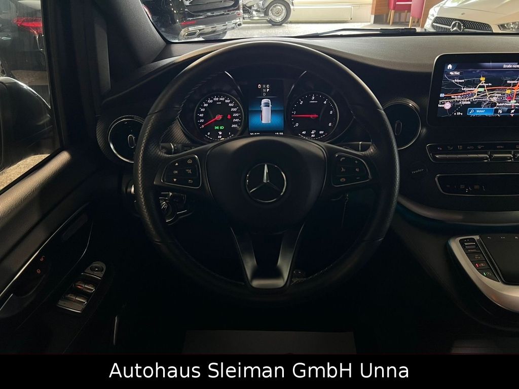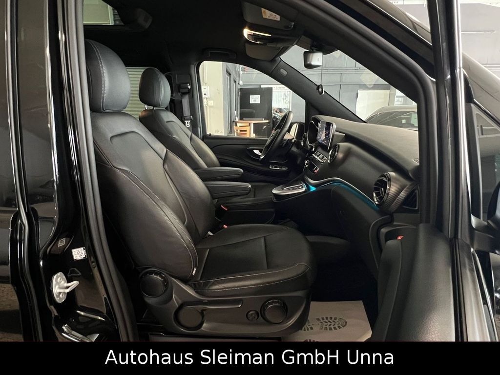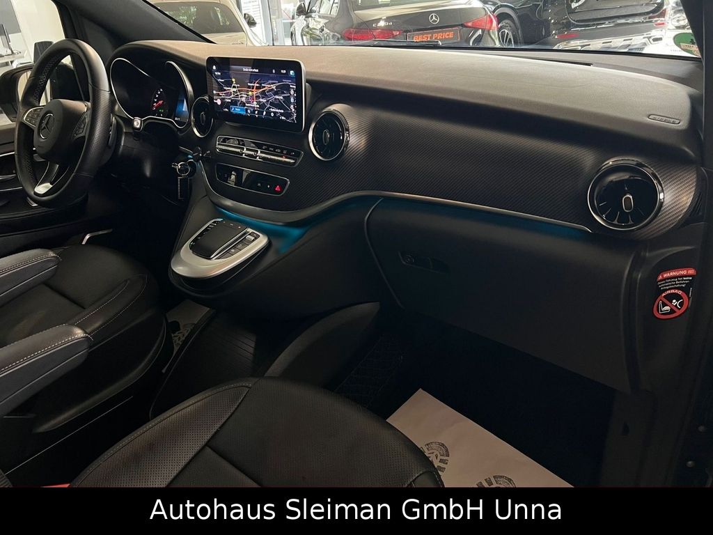 Ablagenetz an Vordersitzlehne links, Adaptives Bremslicht, Airbag Beifahrerseite, Airbag Fahrerseite, Ambiente-Beleuchtung, Anfahrhilfe (Berganfahr-Assistent), Anhängerkupplung: Elektrik für Anhängersteckdose, Anzeige für Waschwasserstand, Armlehnen Fahrgastraum, Auflastung auf 3,1 t, Außenspiegel asphärisch, beide, Außenspiegel elektr. verstell- und heizbar, beide, Außenspiegel mit integrierter Blinkleuchte, Außentemperaturanzeige, Avantgarde Edition, Beleuchtung im Haltegriff Fond mit Lesespot, BlueEfficiency-Paket, Bodenbelag: Teppich im Fahrerraum, Bodenbelag: Teppich im Lade-/Fahrgastraum, Bremsassistent, Bremssystem mit ABS+ASR, DAB-Tuner (Radioempfang digital), Design- und Ausstattungslinie Avantgarde Edition, Direktlenkung mit variabler Lenkkraft-Unterstützung, Einschaltautomatik für Fahrlicht, Einstiegsgriff hinten, Einstiegsleisten mit Schriftzug Mercedes-Benz (beleuchtet), Einstiegsleuchten, Fahrassistenz-Paket, Fahrassistenz-System: Attention-Assist (Müdigkeitserkennungs-Sensor), Fahrassistenz-System: Pannenmanagement, Fahrassistenz-System: Seitenwind-Assistent, Fahrassistenz-System: Verkehrszeichenerkennung, Fenster für hintere Türen / Heckklappe mit Wisch-/Waschanlage, Fenster im Lade-/FG-Raum: - feststehend, vorn links, Fenster im Lade-/FG-Raum: - feststehend, vorn rechts, Feststellbremse elektrisch, Feststeller Schiebetür (Aktiv), Getriebe Automatik GTronic - (9-Stufen), Gurtstraffer, Haltegriffe im Fond, Handschuhfach abschließbar, Harnstofftank (AdBlue): 24 Ltr., Heckklappe mit automatischem Öffnungs- und Schließsystem, Heckscheibe aufstellbar, Heckscheibe heizbar, Intelligent Light System LED, Karosserie/Aufbau: Bus, Karosserie/Aufbau: lang, Kindersicherung, Klimaautomatik Fond (Tempmatik), Kombiinstrument mit Farbdisplay, Komfort-Klimaautomatik Thermotronik, Komfortbeleuchtung im Fahrgast-/Laderaum, Kommunikationsmodul Mercedes me connect (Internetbasierende Dienste), Kopf-Airbag-System (Windowbag), Kopf-Schulter-Airbag (Thoraxbag) Fahrer-/Beifahrerseite, Lenkrad (Lenksäule mech. verstellbar), Lenkrad mit Multifunktion inkl. Reiserechner, Leuchtweitenregelung, Mercedes-Benz Notrufsystem, Metallic-Lackierung, Mittelkonsole vorn mit Rollo / Ablage, Modellpflege, Motor 2,0 Ltr. - 176 kW CDI KAT, Multimediasystem MBUX (Touchscreen 10,25"), Navigationssystem für Multimediasystem MBUX, Park-Paket mit 360° Kamera, PKW-Zulassung, PTC Heater, Radstand 3200 mm, Reifendruck-Kontrollsystem, Rückspiegel innen, Schadstoffarm nach Abgasnorm Euro 6d-TEMP, Scheibenwischer mit Regensensor, Schiebetür Lade-/Fahrgastraum links, Schiebetür links elektrisch, Schiebetür rechts elektrisch, Sicherheitsgurt-System mit Warnanlage (Beifahrerseite), Sitzausstattung: Isofix-Kindersitz-System, Sitzausstattung: Schnellverriegelung für Sitzschienen-System, Sitzbezug / Polsterung: Leder Lugano, Sitze im Fahrerhaus: Beifahrersitz Komfort, Sitze im Fahrerhaus: Fahrersitz heizbar, Sitze im Fahrerhaus: Fahrersitz Komfort, Sitze im Lade-/FG-Raum: 1.Reihe, 1 Einzelsitz links, Sitze im Lade-/FG-Raum: 1.Reihe, 1 Einzelsitz rechts, Sonnenblenden mit Spiegel (beleuchtet), Spiegel-Paket, Steckdose (12V-Anschluß) im Lade-/Fahrgastraum, Steckdosen (12V-Anschluß) im Lade-/Fahrgastraum, 2-fach, Stoßfänger / Stoßf.-Leiste seitlich + Surround-System Burmester, Verglasung hinten abgedunkelt / Schwarzglas, Vlies-Batterie 92 Ah, Vorbereitung Navigationssystem (für Multimediasystem MBUX), Warmluftkanal zum Lade-/Fahrgastraum, Wartungsintervall-Anzeige Assyst, Wärmeschutzverglasung, Zul. Gesamtgewicht 3,10 t.