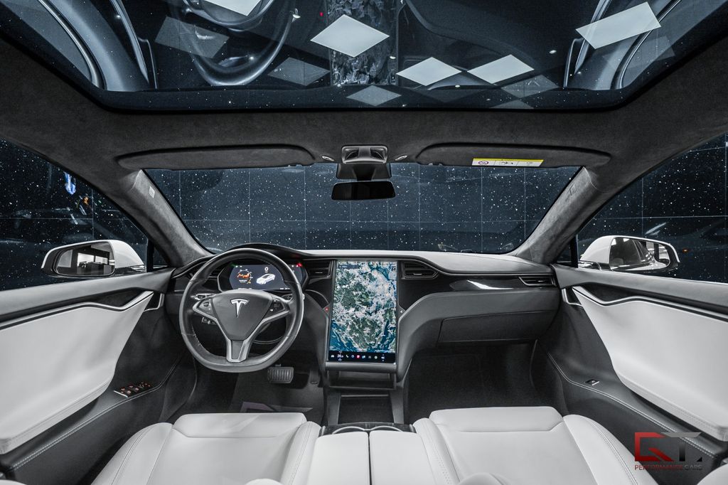 With the facelift, the Tesla Model S has become even prettier and it fits nicely in the white color "Pearl White Metallic" which is combined with the black details all around. The coupe is rich in contrast and dresses stylishly and neatly with comfortable seats in white leather, it is combined with a delicious black Alcantara headliner. The decorative inlays are beautifully dressed in piano lacquer and it is also combined with the large panoramic glass roof that permeates the passenger compartment.