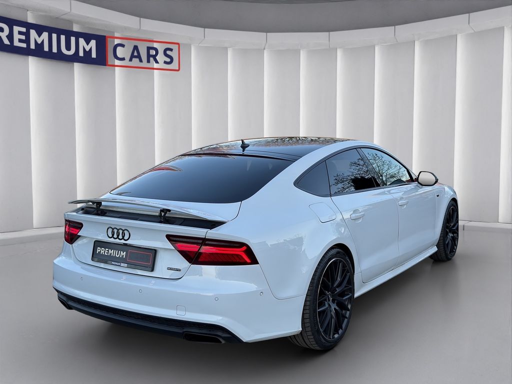 Airbag Fahrer-/Beifahrerseite, Antriebs-Schlupfregelung (ASR) mit EDS, Audi Drive Select, Ausstattungs-Paket: S line Sport / Plus, Außenspiegel asphärisch, links, Außenspiegel asphärisch, rechts, Außenspiegel schwarz, Bremsassistent, Exterieur-Paket S line, Fahrassistenz-System: Anfahr-Assistent (hold assist), Fensterheber elektrisch vorn + hinten, Gepäckraumklappe elektr. betätigt (öffnen + schliessen), Heckklappe mit Spoiler integriert, Heckleuchten LED, Heckspoiler (elektrisch ausfahrbar), Isofix-Aufnahmen für Kindersitz, Karosserie: 4-türig, Kopf-Airbag-System (Sideguard), Kraftstofftank: 75 Ltr., Lenksäule (Lenkrad) mech. Höhen-/Längsverstellung, Mittelarmlehne hinten mit Fach, Motor 3,0 Ltr. - 240 kW V6 24V TDI, Multifunktionsanzeige / Bordcomputer, Optik-Paket schwarz Audi exclusive, Parkbremse elektro-mechanisch, Raucher-Paket, Reifenkontroll-Anzeige, Schadstoffarm nach Abgasnorm Euro 6, Schalt-/Wählhebelgriff Leder, Seitenairbag vorn, Sitzbezug / Polsterung: Leder Valcona mit Logo-Prägung in Vordersitzlehnen, Start/Stop-Anlage, Wärmeschutzverglasung grün getönt, Head-up-Display