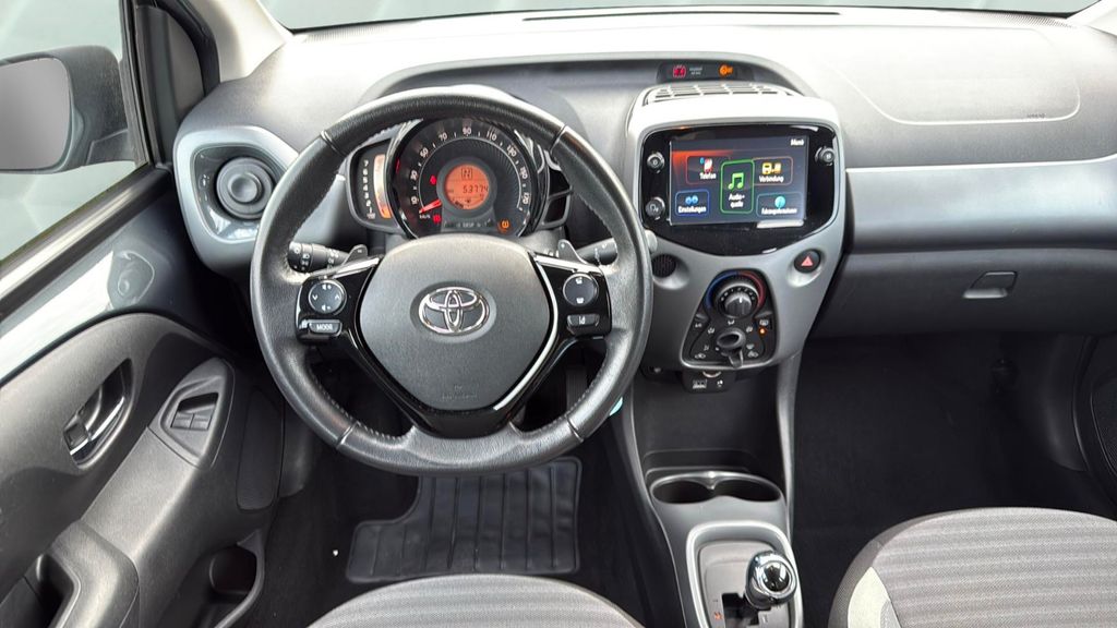 3. Bremsleuchte, Airbag Beifahrerseite abschaltbar, Airbag Fahrer-/Beifahrerseite, Audiosystem: Multimedia Toyota x-touch mit Rückfahrkamera, Außenspiegel elektr. verstell- und heizbar, Außenspiegel lackiert, Außentemperaturanzeige, Bordcomputer, Bremsassistent, Drehzahlmesser, Elektr. Bremskraftverteilung, Fahrassistenz-System: Berganfahrkontrolle (HAC), Faltdach, Frontgrill X-Element, Pianolack, Frontgrill X-Verlängerung, mattschwarz, Gepäckraumabdeckung / Rollo, Heckscheibe heizbar, Heckscheibenwischer, Heckschürze, schwarz matt, Innenausstattung: Anthrazit, Isofix-Aufnahmen für Kindersitz, Karosserie: 5-türig, Kopf-Airbag-System, Lenksäule (Lenkrad) höhenverstellbar, Modellpflege, Motor 1,0 Ltr. - 53 kW KAT, Reifen-Reparaturkit, Reifendruck-Kontrollsystem, Rücksitz geteilt, Rücksitz klappbar, Schadstoffarm nach Abgasnorm Euro 6, Schalt-/Wählhebelgriff Leder, Seitenairbag vorn, Sitz vorn links höhenverstellbar, Steckdose (12V-Anschluß) in Mittelkonsole, Stoßfänger Wagenfarbe, Türgriffe außen Wagenfarbe, Türgriffe innen verchromt, Warnanlage für Sicherheitsgurte hinten, Warnanlage für Sicherheitsgurte vorn, Wärmeschutzverglasung getönt, X-business-Paket, X-look-Paket