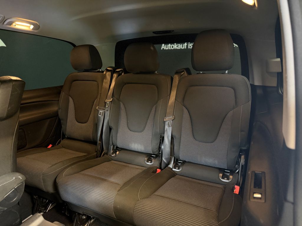 Ablagenetz an Vordersitzlehne links, Adaptives Bremslicht, Airbag Beifahrerseite, Airbag Fahrerseite, Anfahrhilfe (Berganfahr-Assistent), Anhängerkupplung: Elektrik für Anhängersteckdose, Anzeige für Waschwasserstand, Armlehnen Fahrgastraum, Außenspiegel asphärisch, beide, Außenspiegel elektr. verstell- und heizbar, beide, Außenspiegel mit integrierter Blinkleuchte, Außentemperaturanzeige, Beleuchtung im Haltegriff Fond, BlueEfficiency-Paket, Bodenbelag: Teppich im Fahrerraum, Bodenbelag: Teppich im Lade-/Fahrgastraum, Bremsassistent, Bremssystem mit ABS+ASR, DAB-Tuner (Radioempfang digital), Dachverkleidung / Innenhimmel Stoff grau, Design- und Ausstattungslinie Edition, Direktlenkung mit variabler Lenkkraft-Unterstützung, Edition, Einschaltautomatik für Fahrlicht, Einstiegsgriff hinten, Einstiegsleuchten, Fahrassistenz-System: Attention-Assist (Müdigkeitserkennungs-Sensor), Fahrassistenz-System: Pannenmanagement, Fahrassistenz-System: Seitenwind-Assistent, Fenster für hintere Türen / Heckklappe mit Wisch-/Waschanlage, Fenster im Lade-/FG-Raum: - elektr. ausstellbar, hinten links/rechts, Fenster im Lade-/FG-Raum: - feststehend, vorn links, Fenster im Lade-/FG-Raum: - feststehend, vorn rechts, Feststellbremse elektrisch, Feststeller Schiebetür (Aktiv), Getriebe Automatik GTronic - (9-Stufen), Gurtstraffer, Haltegriffe im Fond, Handschuhfach abschließbar, Harnstofftank (AdBlue): 24 Ltr., Heckklappe mit Verglasung, Heckscheibe heizbar, Karosserie/Aufbau: Bus, Karosserie/Aufbau: lang, Kindersicherung, Klimaautomatik Fond (Tempmatik), Kombiinstrument mit Farbdisplay, Komfortbeleuchtung im Fahrgast-/Laderaum, Kommunikationsmodul Mercedes me connect (Internetbasierende Dienste), Kopf-Airbag-System (Windowbag), Kopf-Schulter-Airbag (Thoraxbag) Fahrer-/Beifahrerseite, Lenkrad (Lenksäule mech. verstellbar), Lenkrad mit Multifunktion inkl. Reiserechner, Leuchtweitenregelung, Mercedes-Benz Notrufsystem, Metallic-Lackierung, Mittelkonsole vorn mit Rollo / Ablage, Modellpflege, Motor 2,0 Ltr. - 140 kW CDI KAT, Multimediasystem MBUX (Touchscreen 7"), Park-Paket, PKW-Zulassung, PTC Heater, Radstand 3200 mm, Reifendruck-Kontrollsystem, Rückspiegel innen, Schadstoffarm nach Abgasnorm Euro 6d, Scheibenwischer mit Regensensor, Sicherheitsgurt-System mit Warnanlage (Beifahrerseite), Sitzausstattung: Isofix-Kindersitz-System, Sitzausstattung: Schnellverriegelung für Sitzschienen-System, Sitzbezug / Polsterung: Stoff, Sitze im Fahrerhaus: Beifahrersitz Komfort, Sitze im Fahrerhaus: Fahrersitz heizbar, Sitze im Fahrerhaus: Fahrersitz Komfort, Sitze im Lade-/FG-Raum: 1.Reihe, 1 Einzelsitz links, Sitze im Lade-/FG-Raum: 1.Reihe, 1 Einzelsitz rechts, Sonnenblenden mit Spiegel (beleuchtet), Spiegel-Paket, Sport-Fahrwerk, Sport-Paket Exterieur, Steckdose (12V-Anschluß) im Lade-/Fahrgastraum, Steckdosen (12V-Anschluß) im Lade-/Fahrgastraum, 2-fach, Stoßfänger / Stoßf.-Leiste seitlich + Griff an Heckklappe lackiert, Verglasung hinten abgedunkelt / Schwarzglas, Vlies-Batterie 92 Ah, Vorbereitung Navigationssystem (für Multimediasystem MBUX), Warmluftkanal zum Lade-/Fahrgastraum, Wartungsintervall-Anzeige Assyst, Wärmeschutzverglasung, Zul. Gesamtgewicht 3,10 t Regensensor