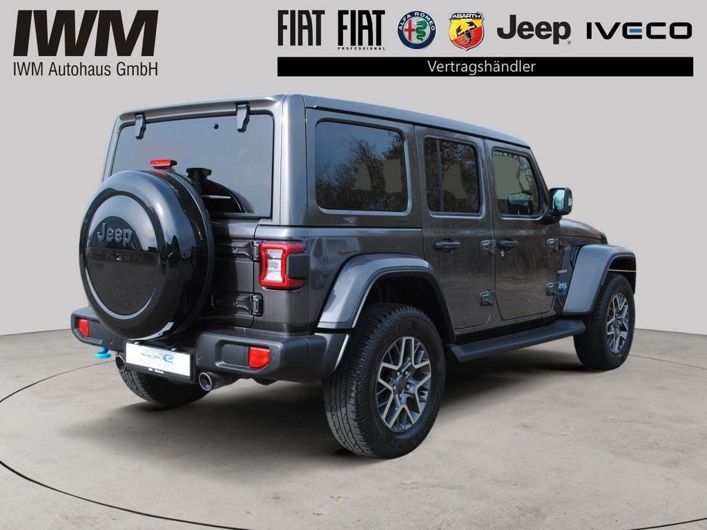 Airbag Fahrer-/Beifahrerseite, Ambiente-Beleuchtung LED, Audio-Navigationssystem: UConnect Smartouch VP4 Navigation (Touchscreen 8,4"), Automatische Fahrlichtschaltung / Lichtsensor, Außenspiegel elektr. verstell- und heizbar, beide, Blinkleuchte in Außenspiegel integriert, Differentialsperre (Hinterachse), Fahrassistenz-System: Querverkehrs-Assistent Heck (Rear Cross Path Detection), Heckleuchten LED, Info-Center (EVIC) mit 7"-Display, Innenspiegel mit Abblendautomatik, Karosserie: 4-türig, Klimaautomatik, Klimaautomatik 2-Zonen, Kopf-Airbag-System, Kotflügelverbreiterung in Wagenfarbe, Lendenwirbelstütze Sitz vorn links, Lenkrad mit Multifunktion, LM-Felgen, Motor 2,0 Ltr. - 200 kW Hybrid, Otto-Partikelfilter (OPF), Parkpilotsystem hinten, Parkpilotsystem vorn und hinten, Plug-in Hybrid-Technologie, Radstand 3008 mm, Raucher-Paket, Reserverad in Fahrbereifung, Reserverad-Abdeckung, Rückfahrkamera, Rücksitz geteilt / klappbar, Schadstoffarm nach Abgasnorm Euro 6d, Schalt-/Wählhebelgriff Leder, Sound-System Alpine Premium, Start/Stop-Anlage, Stoßfänger Off-Road-Design, Technologie-Paket, Trittbretter seitlich, Unterfahrschutz, Verglasung hinten abgedunkelt.