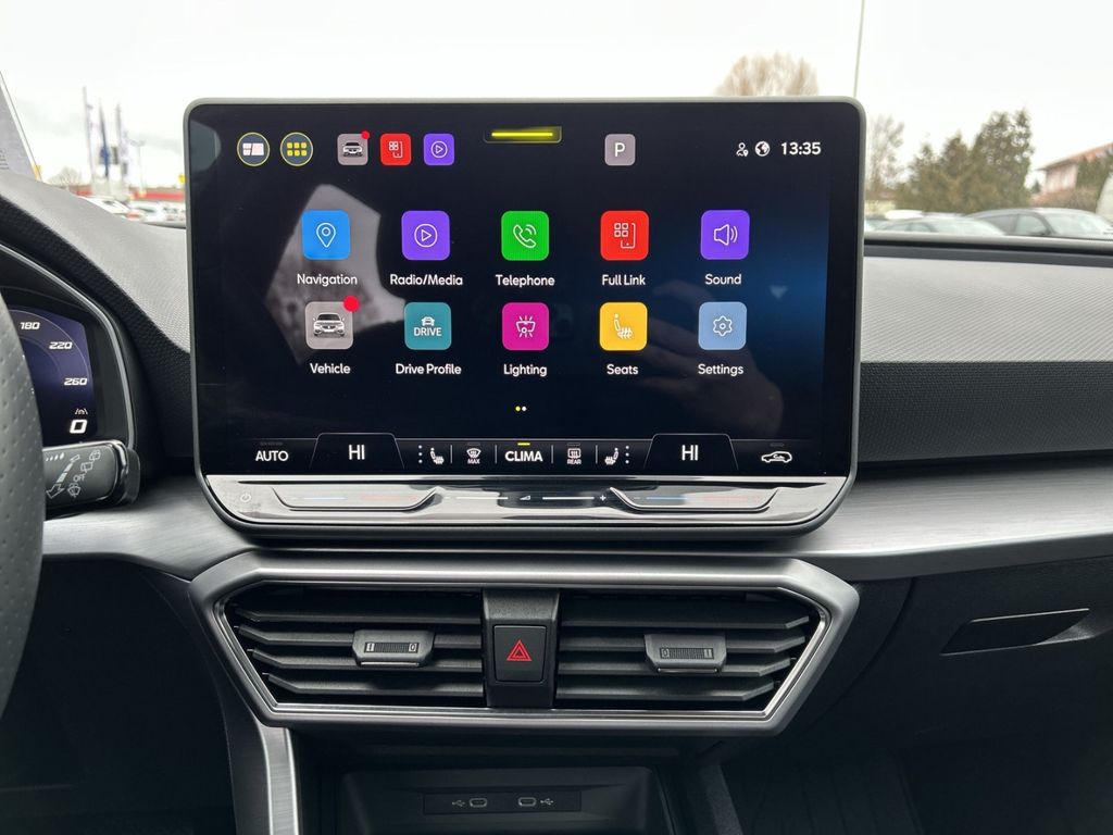 - Audio-Navigationssystem: Sprachsteuerungs-System, Full Link (MirrorLink, Apple CarPlay und Android Auto), Mobile Online Dienste Seat Connect, Mobile Online Dienste Seat Connect Plus, Audio-Navigationssystem mit Touchscreen Farbbildschirm 12,9