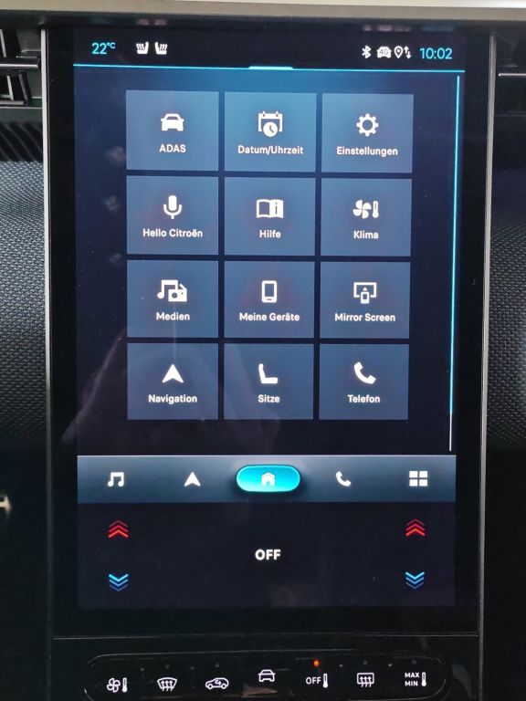 - Radio: Citroën Connect NAV mit 13-Zoll vertikalem Touchscreen - Kabelloses Apple CarPlay und Android Auto - Bluetooth, bis zu 2 Smartphones gleichzeitig - 6 Lautsprecher - Digitalradio - 2 USB-Typ-C-Anschluss vorne (1x Daden/ 1x Laden) - 2 USB-Typ-C-Anschlüsse hinten (2x Laden) - Connect One (inkl. 10-Jahres-Abonnement) - Citroën Notruf und Assistance - Connect Plus Abonnement (12-Monate inkl.) - Citroën vernetzte 3D-Navigation mit integrierter Europakarte - Natürliche Spracherkennung mit künstlicher Intelligenz von ChatGPT