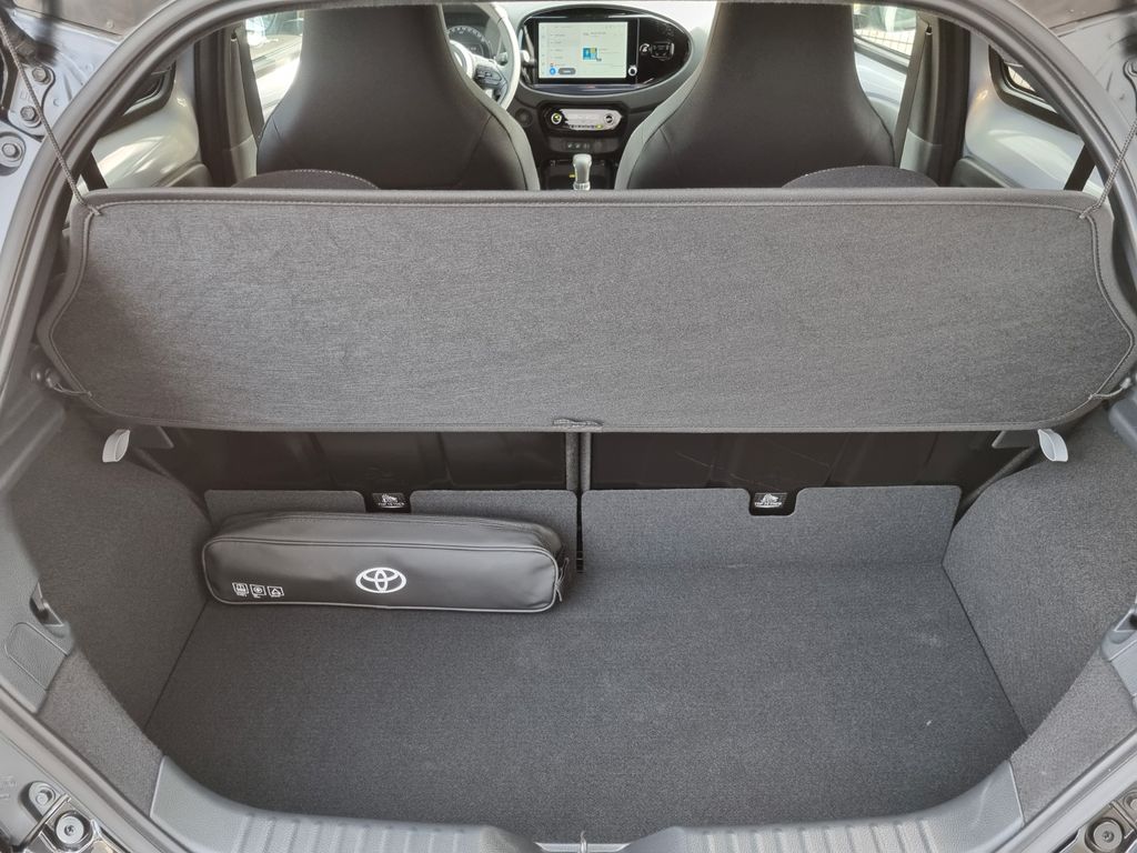 Weitere Ausstattung:CVT-Automatikgetriebe, 2-Farben-Lackierung Metallic, Exklusive Farbe jasmine silber metallic, 3. Bremsleuchte, Airbag Fahrer-/Beifahrerseite, Audiobedienung am Lenkrad, Autom. Begleitfunktion der Beleuchtung (Follow me home, FMH), Außenspiegel elektr. verstell- und heizbar, Außenspiegel schwarz lackiert, Fahrassistenz-System: Eco-Anzeige für verbrauchsoptimiertes Fahren, Leichtmetallfelgen 18", Fahrassistenz-System: Fernlichtassistent (Abblendautomatik Fahrlicht, AHB), Fahrassistenz-System: Sicherheitssystem Toyota Connect mit automatischem Notruf (eCall), JBL-Soundsystem mit Subwoofer, Gepäckraumabdeckung, Innenraumfilter: Staub- und Pollenfilter mit Aktivkohlefilter, Isofix-Kindersitz-System, Karosserie: 5-türig, Kindersicherung, Komfort-Paket, Kopf-Airbag-System, Kopfstützen hinten, Lenkrad Applikationen in Wagenfarbe, Klimaautomatik, Lenksäule (Lenkrad) höhenverstellbar, Motor 1,0 Ltr. - 53 kW KAT, Multimedia Display (10,5 Zoll), Nebelscheinwerfer Einfassung Pianolack, Park-Assistent mit Rückfahrkamera, Reifen-Reparaturkit, Reifendruck-Kontrollsystem, Rücksitz klappbar, Schadstoffarm nach Abgasnorm Euro 6e, Schutzfolie Türgriffmulde, Seitenairbag vorn, Sicht-Paket, Voll-LED-Scheinwerfer, Sitz vorn links höhenverstellbar, Sitzbezug / Polsterung: Stoff/Leder, Sitzheizung vorn, Smart Connect-Paket, Sonnenblenden mit Make-up-Spiegel, Sound-System JBL Premium (inkl. Subwoofer), Stop&Go-System (TSGS), Stoßfänger Wagenfarbe, Toyota Safety Sense, Türgriffe außen Wagenfarbe, Türgriffe innen verchromt, Verglasung hinten abgedunkelt, Warnanlage für Sicherheitsgurte hinten, Warnanlage für Sicherheitsgurte vorn