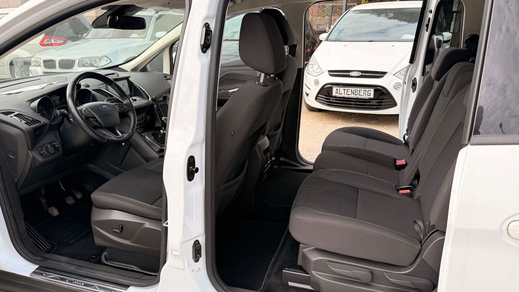 6 Lautsprecher, Antischlupfregelung (ASR), Außenspiegel elektr. verstell- und heizbar, Blinkleuchte in Außenspiegel integriert, Bordcomputer, Business-Paket, Dachspoiler Wagenfarbe, Einstiegschienen mit Modell-Schriftzug, Elektr. Bremskraftverteilung (EBD), Fahrassistenz-System: Active City Stop, Fahrassistenz-System: Berganfahr-Assistent (Hill-Holder), Fensterheber elektrisch vorn + hinten mit Komfortschließung, Flexibles Sitzsystem FFS, Gepäckraumabdeckung / Rollo, Innenraumfilter: Staub- und Pollenfilter, Intelligent Protection System (IPS), Isofix-Aufnahmen für Kindersitz, Karosserie: 5-türig, Kindersicherung elektrisch, Komfortsitze vorn, Kopfstützen hinten verstellbar, Lendenwirbelstütze Sitz vorn links, Lenksäule (Lenkrad) höhen-/längsverstellbar, Motor 1,5 Ltr. - 88 kW TDCi KAT, My Key (2. Fahrzeugschlüssel programmierbar), Reifendruck-Kontrollsystem, Schadstoffarm nach Abgasnorm Euro 6, Schalt-/Wählhebelgriff Leder, Schiebetüren beidseitig, Sitz vorn links höhenverstellbar, Sonnenschutzrollo an Türscheiben hinten, Spezialausführung 2, Stahlfelgen 6,5x16, Start/Stop-Anlage, Steckdose (12V-Anschluß) im Koffer-/Laderaum, Stoßfänger Wagenfarbe, Stoßfängergrill, Rahmen Chrom, Türgriffe außen Wagenfarbe, Verglasung getönt