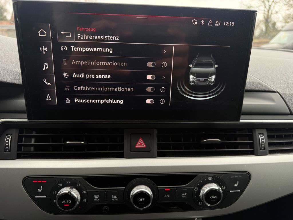Airbag Beifahrerseite abschaltbar, Audi connect (Notruf- und Assistance-System), Außenspiegel Wagenfarbe, Blinkleuchten LED in Außenspiegel integriert, Dachhimmel Stoff, Dachreling schwarz, Einstiegsleisten mit Aluminiumeinlage, Fahrassistenz-System: City-Notbremsfunktion (Audi pre sense City), Fensterzierleisten schwarz, Frontscheibe Akustikglas, Funkschlüssel, Fußmatten Velours, Geschwindigkeits-Begrenzeranlage, Harnstofftank (SCR): 12 Ltr., Heckleuchten LED, Innenausstattung: Dekoreinlagen Akzentteile in der Armaturentafel schwarz matt, Innenausstattung: Dekoreinlagen Diamantlack silbergrau, Isofix-Aufnahmen für Kindersitz, Karosserie: 4-türig, Klimaautomatik, Kopf-Airbag-System (Sideguard), Kraftstofftank: 40 Ltr., Leichtlaufreifen, LM-Felgen, Mild-Hybrid 100 kW (Motor 2,0 Ltr. - 100 kW 16V TDI), Mild-Hybrid-Technologie, Modellpflege, Multi-Media-Interface MMI Basic Plus / MMI Radio Plus, Nichtraucher-Paket, Radioempfang digital (DAB), Reifen-Reparaturkit, Reifendruck-Kontrollsystem, Rücksitzlehne geteilt/klappbar (40:20:40), Schadstoffarm nach Abgasnorm Euro 6d-TEMP, Scheibenwaschdüsen heizbar, Scheinwerfer Basis (LED - Technologie), SCR-System (AdBlue-Technologie), Seitenairbag vorn, Sitzbezug / Polsterung: Stoff Index, Sitze vorn manuell einstellbar, Standard-Fahrwerk, Start/Stop-Anlage, Stoßfänger Ausführung: Basis, Uni-Lackierung, Universal-Schnittstelle Bluetooth, Wendeladeboden (Ladeboden), Wärmeschutzverglasung grün getönt