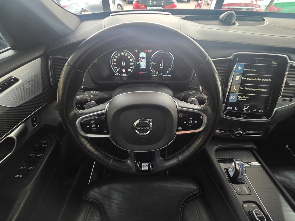 Anhängerkupplung semi-elektrisch, Armaturenbrett und Türverkleidungen in Leder, Aufbewahrungstasche für das Ladekabel, Außen-/Innenspiegel mit Abblendautomatik, Business-Paket PRO, Fahrwerk mit Four-C-Technologie (Aktives Fahrwerk), Head-up-Display, Innenausstattung: Dekoreinlagen Carbon, Laderaum-Paket, Licht-Paket, LM-Felgen 9x22 (5-Doppelspeichen R-Design, Diamantschnitt / Graphitoptik), Metallic-Lackierung, Radioempfang digital (DAB), Rückfahrkamera mit 360° Surround View, Seitenscheiben hinten und Heckscheibe abgedunkelt, Seitenwangen elektr. verstellbar Sitze vorn, Sitzbezug / Polsterung: Leder Nappa perforiert, Sonnenschutzrollo an Seitenscheiben hinten, Textilfussmatten, Volvo ON CALL, Vorbereitung Mobile Online Dienste Apple CarPlay