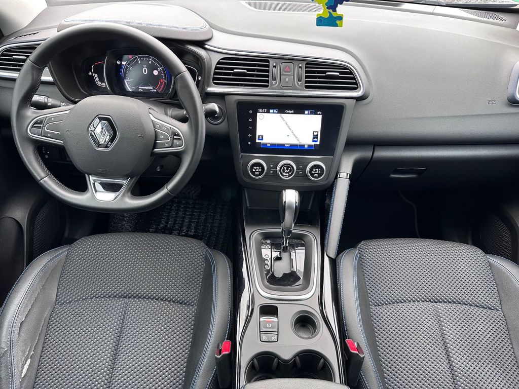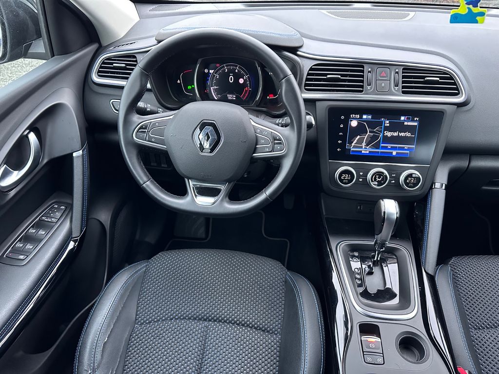 Dieser gepflegte Renault Kadjar SUV aus dem Jahr 2019 überzeugt durch seine umfangreiche Ausstattung und moderne Technik. Der 140 PS starke Benzinmotor mit 1333 ccm Hubraum und Frontantrieb bietet eine ausgewogene Kombination aus Leistung und Effizienz. Das Automatikgetriebe sorgt für komfortables Fahren im Alltag. Die schwarze Metallic-Lackierung harmoniert perfekt mit dem teilweise in Leder ausgeführten schwarzen Innenraum.Der Kadjar verfügt über ein umfassendes Sicherheitspaket mit Front-, Seiten- und weiteren Airbags, ESP, ABS, Spurhalteassistent und Kollisionsvermeidungssystem. Die Einparkhilfe vorne und hinten sowie die Rückfahrkamera erleichtern das Manövrieren. Für zusätzlichen Komfort sorgen die 2-Zonen-Klimaautomatik, Sitzheizung, Ambientbeleuchtung, schlüsselloser Zugang und das Navigationssystem.