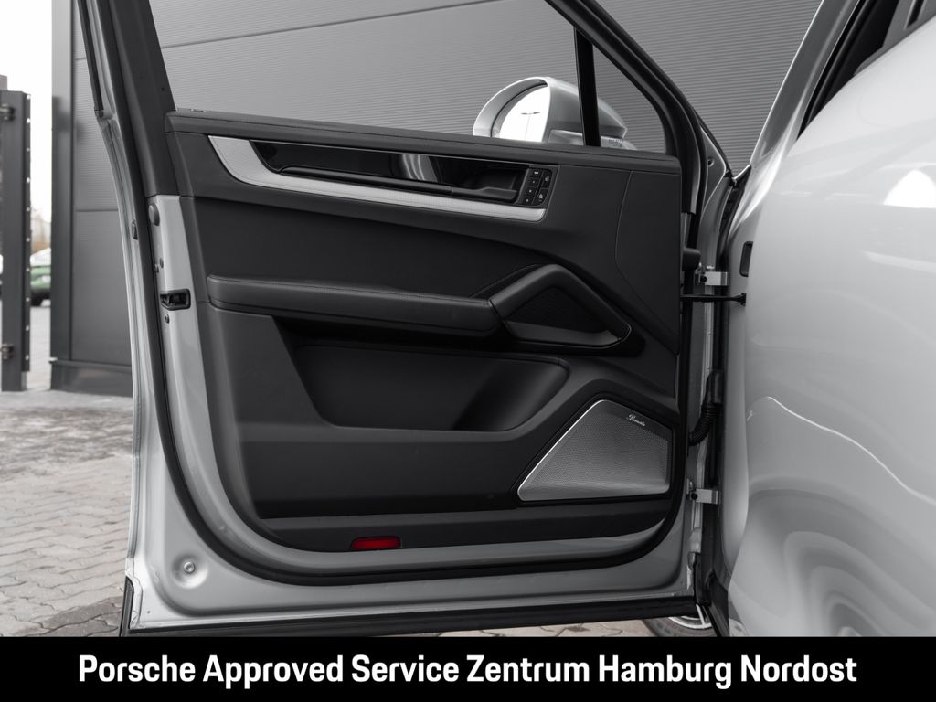 - Weiteres: (3FU) Panorama Dachsystem, (3S2) Dachreling Aluminium schwarz, (6FU) Außenspiegel lackiert in Exterieurfarbe, (QJ4) Exterieur-Paket Schwarz (hochglanz), (1D3) Elektrisch ausklappbare Anhängezugvorrichtung, (0PX) E-Hybrid Exterieur Differenzierung in Acidgreen, (1BK) Adaptive Luftfederung mit Niveauregulierung und Höhenverstellung inklusive Porsche Active Suspension Management (PASM), (QZ7) Servolenkung Plus, (1PD) Radschrauben mit Diebstahlsicherung, (57Q) 21-Zoll RS Spyder Design Räder inkl. Radhausverbreiterung in Exterieurfarbe, (Q2J) Komfortsitze vorn (14-Wege, elektrisch) mit Memory-Paket, (4A4) Sitzheizung vorn und hinten, (9VJ) Burmester® 3D High-End Surround Sound-System, (73J) Netzkabel für Industriesteckdose rot (400 V, 16 A, 5 Pin), (8IU) HD-Matrix LED-Hauptscheinwerfer, (VW0) Geräusch- und Wärmeschutzverglasung (vorn) inklusive Privacy-Verglasung, (KS1) Head-Up Display, (7Y1) Spurwechselassistent, (KA6) ParkAssistent inklusive Surround View, (QQ1) Ambientebeleuchtung, (9AE) 4-Zonen-Klimaautomatik, (3Y7) Sonnenrollos für Fondseitenfenster elektrisch, (3GN) Laderaummanagement, (PY3) Porsche InnoDrive inklusive Aktive Spurführung