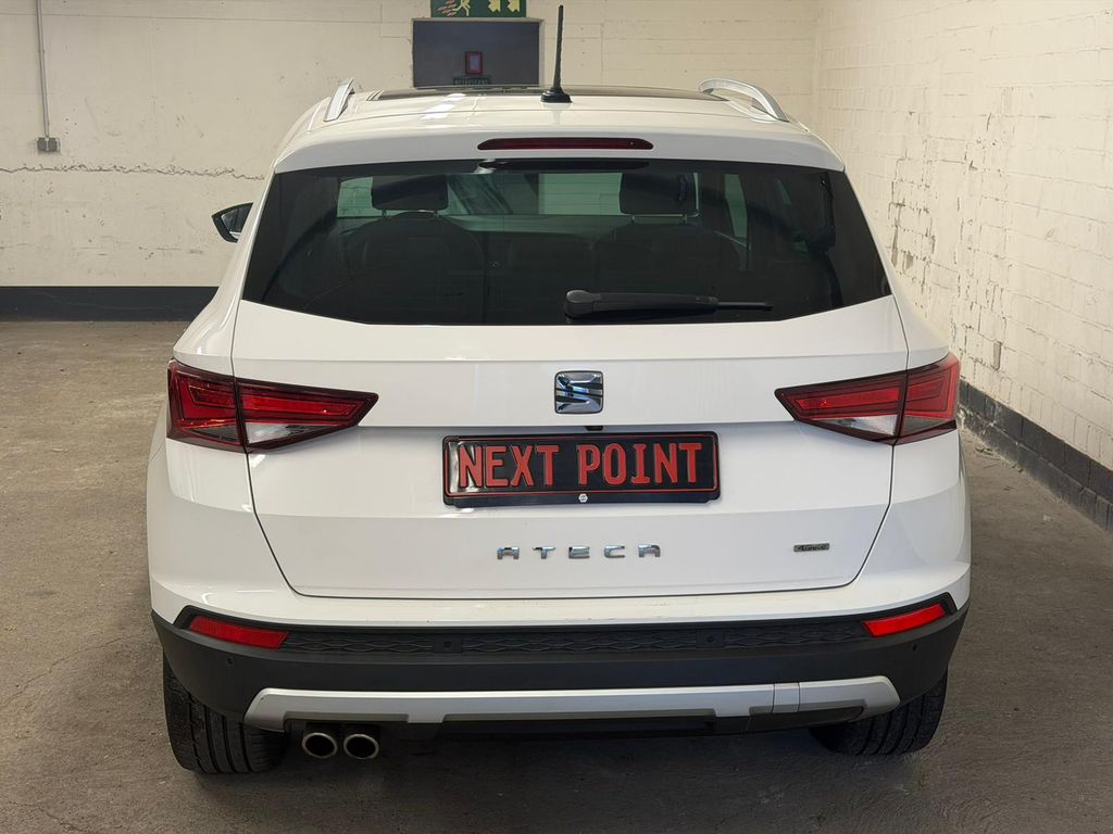 Dieser gepflegte SEAT Ateca aus dem Jahr 2016 präsentiert sich in elegantem Weiß-Metallic und überzeugt durch seine umfangreiche Ausstattung. Der leistungsstarke Dieselmotor mit 190 PS und Allradantrieb bietet sowohl auf der Straße als auch im Gelände optimale Fahreigenschaften. Das Automatikgetriebe sorgt für komfortables Fahren in jeder Situation. Mit nur zwei Vorbesitzern und vollständiger Servicehistorie ist dieser SUV ein zuverlässiger Begleiter für den Alltag.Der Innenraum besticht durch hochwertige Lederausstattung in Schwarz, ein Panorama-Glasdach und zahlreiche Komfortfunktionen. Das Navigationssystem, Bluetooth-Konnektivität und DAB-Radio bieten modernste Unterhaltungs- und Informationsmöglichkeiten. Die automatische Klimaanlage, Sitzheizung und das Multifunktionslenkrad in Leder erhöhen den Fahrkomfort zusätzlich. Sicherheit wird großgeschrieben mit zahlreichen Airbags, Spurhalteassistent, Totwinkelassistent und diversen Fahrassistenzsystemen.