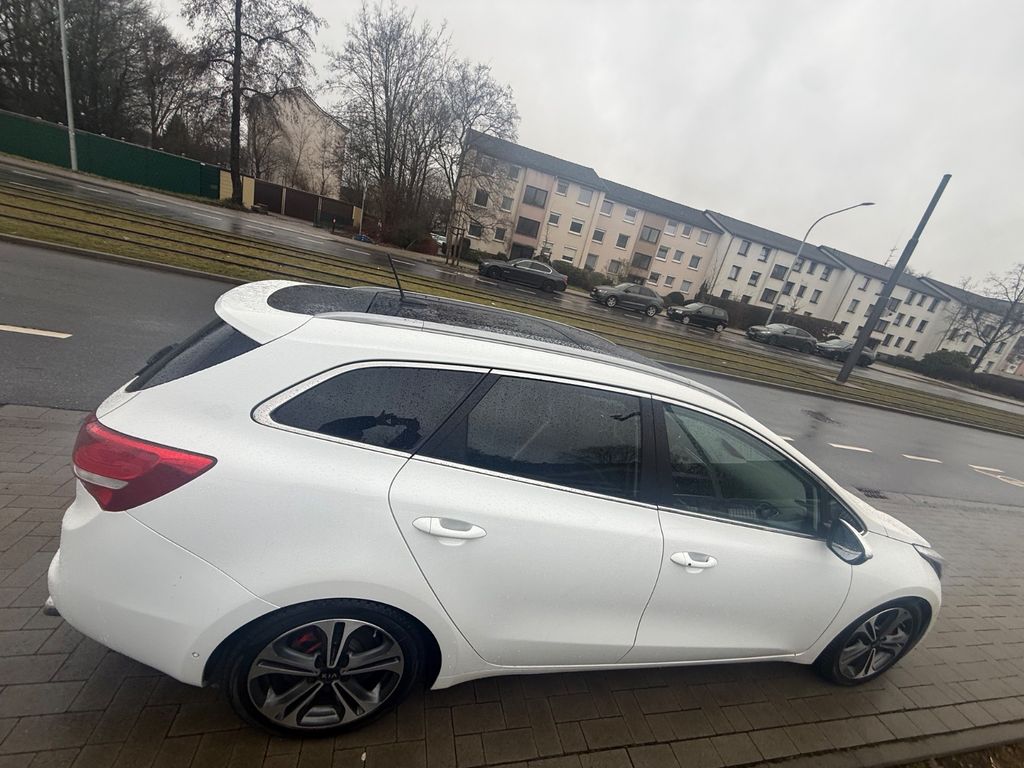 Weitere Ausstattung:Abbiegelicht (Adaptives Kurvenlicht), Airbag Fahrer-/Beifahrerseite, Aktives Bremslicht (ESS), Ambiente-Beleuchtung, Antriebs-Schlupfregelung (TCS), Anzeigeinstrumente Supervision mit LCD Display, Audio-Navigationssystem KIA (7"-Display), Audiosystem KIA CD/MP3-Radio, Außenspiegel elektr. anklappbar, Außenspiegel elektr. verstellbar, beide, Außenspiegel heizbar, Außenspiegel mit Umfeldleuchte, Außenspiegel Wagenfarbe, Außenspiegelgehäuse Klavierlack, Blinkleuchte in Außenspiegel integriert, Bordcomputer, Bremsassistent, Brillenfach in Dachhimmel / Dachkonsole integriert, Dachreling, Dachspoiler, Einstiegsleisten (Aluminium), Fahrassistenz-System: Berganfahr-Assistent, Fahrassistenz-System: Spurhalteassistent (LDWS, Lane Departure Warning System), Fensterheber elektrisch vorn + hinten, Freisprecheinrichtung Bluetooth, Frontscheibe mit Wischerablagenheizung, Gegenlenkunterstützung (Vehicle Stability Management, VSM), Gepäckraum-Abtrennung (Netz), Gepäckraumabdeckung / Rollo, Gepäcksicherungsnetz, Getriebe 7-Gang - Doppelkupplungsgetriebe DCT, Getränkehalter hinten, Gurtstraffer mit Kraftbegrenzer, Handschuhfach mit Kühlfunktion, Heckleuchten LED, Heckscheibe heizbar, Heckscheibenwischer, Isofix-Aufnahmen für Kindersitz, Karosserie: 5-türig, Klimaautomatik 2-Zonen, Kopf-Airbag-System, Kühlergrill Klavierlack, Laderaumschienen, Lendenwirbelstütze Sitz vorn links und rechts, elektr. verstellbar, Lenkrad heizbar, Lenksäule (Lenkrad) höhen-/längsverstellbar, LM-Felgen, Metallic-Lackierung, Mittelarmlehne hinten, Mittelarmlehne vorn verschiebbar, Mittelkonsole Klavierlack-Optik, Modellpflege, Motor 1,6 Ltr. - 100 kW CRDi KAT, Multifunktion für Lenkrad, Panoramadach / Ausstelldach (Glas), Park-Assistent Intelligent Park Assist, Pedale Aluminium, Reifendruck-Kontrollsystem, Reserverad als Notrad, Rücksitz klappbar 1/3-2/3, Schadstoffarm nach Abgasnorm Euro 6, Schalt-/Wählhebelgriff Leder, Seitenairbag, Sensor Scheibenbeschlagerkennung, Sitz vorn links höhenverstellbar, Sitz vorn rechts mech. höhenverstellbar, Sitzbezug / Polsterung: Teilleder, Sitzheizung vorn, Sonnenblenden mit Spiegel (beleuchtet), Steckdose (12V-Anschluß) im Koffer-/Laderaum, Steckdose (12V-Anschluß) in Mittelkonsole, Stoßfänger Wagenfarbe, Türgriffe außen Wagenfarbe, USB-Anschluss + AUX-IN-Anschluss, Verglasung hinten abgedunkelt (Privacy Glass), Wärmeschutzverglasung, Zuheizer