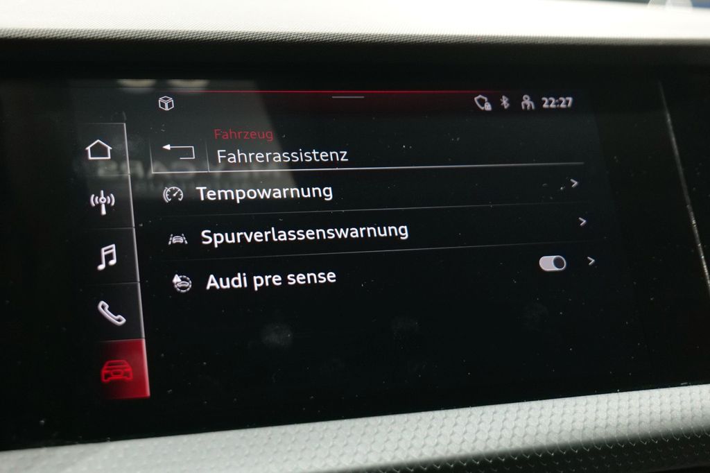 Airbag Beifahrerseite abschaltbar, Airbag Fahrer-/Beifahrerseite, Anzeige für Wasserstand (Wischanlage), Außenspiegel Wagenfarbe, Dachkantenspoiler, Dachkuppel Wagenfarbe, Einstiegsleisten mit Aluminiumeinlage, Fahrassistenz-System: Bremsassistent (Audi pre sense front), Fahrassistenz-System: Müdigkeitserkennung (Pausenempfehlung), Fahrassistenz-System: Notfall-Assistent mit automatischem Notruf, Fahrassistenz-System: Spurverlassenswarnung, Fensterheber elektrisch vorn + hinten, Frontscheibe Wärmeschutzverglasung, Funkschlüssel, Fußmatten Velours, Geschwindigkeits-Begrenzeranlage, Heckscheibenwischer, Innenausstattung: Dekoreinlagen Akzentteile schwarz, Isofix-Aufnahmen für Kindersitz an Beifahrersitz und Rücksitz, Karosserie: 4-türig, Kombiinstrument digital, Kopf-Airbag-System (Sideguard), Lenksäule (Lenkrad) mech. Höhen-/Längsverstellung, LM-Felgen, Motor 1,0 Ltr. - 70 kW TFSI, Nichtraucher-Paket, Otto-Partikelfilter (OPF), Radioempfang digital (DAB), Reifen-Reparaturkit, Reifenkontroll-Anzeige, Rücksitzlehne geteilt/klappbar, Schadstoffarm nach Abgasnorm Euro 6d, Seitenairbag vorn, Sitz vorn links höhenverstellbar, Sitzbelegungserkennung für Sicherheitsgurte, Standard-Fahrwerk, Start/Stop-Anlage, Stoßfänger Ausführung: advanced, Universal-Schnittstelle Bluetooth, USB-Schnittstelle, Wärmeschutzverglasung (seitlich / hinten)