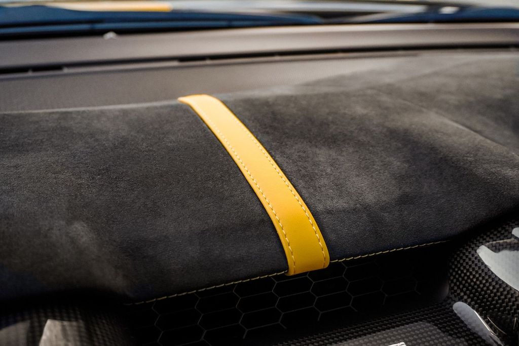 The example offered here features a refined yet striking specification in Blu Tour de France with Giallo Fly striping and yellow details. The interior, trimmed in Jeans Aunde Nero Alcantara with yellow stitching, combines sportiness with sophistication. Every possible carbon fibre option has been selected, reflecting the experience of a true Ferrari connoisseur.
