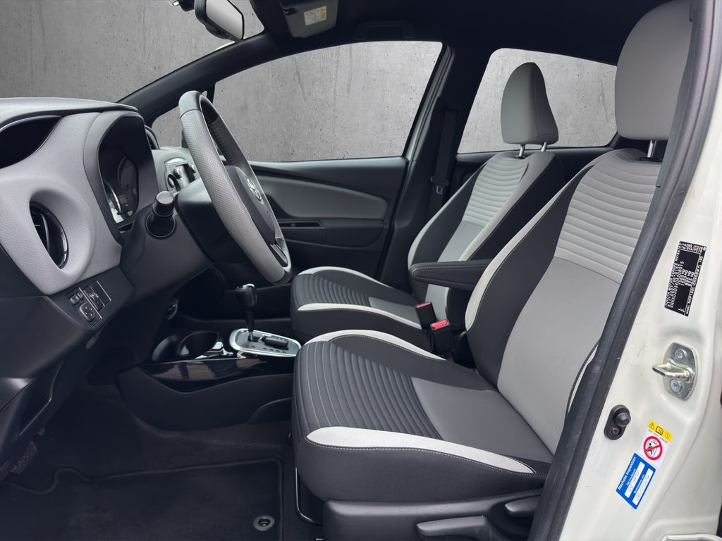 Weitere Ausstattung:2-Farben-Lackierung, 3. Bremsleuchte, 6 Lautsprecher, Airbag Beifahrerseite abschaltbar, Airbag Fahrer-/Beifahrerseite, Audiosystem: Multimedia Toyota Touch 2, Außenspiegel elektr. anklappbar, Außenspiegel elektr. verstell- und heizbar, Außenspiegel lackiert, Außentemperaturanzeige, Blinkleuchte in Außenspiegel integriert, Bremsassistent, Chromeinfassung für Nebelscheinwerfer, DAB-Tuner (Radioempfang digital), Dachspoiler, Drehzahlmesser, Elektr. Bremskraftverteilung, Elektromotor 45 kW (Hybridantrieb), Fahrassistenz-System: Fernlichtassistent (Abblendautomatik Fahrlicht, AHB), Fensterheber elektrisch vorn + hinten, Freisprechanlage Bluetooth, Heckscheibenwischer, Innenspiegel mit Abblendautomatik, Isofix-Aufnahmen für Kindersitz, Karosserie: 5-türig, Klimaautomatik 2-Zonen, Knieairbag Fahrerseite, Kopf-Airbag-System, Kühlergrill schwarz lackiert, mit Chromleiste, LED-Paket, Lenkrad (Sport/Leder), LM-Felgen, Motor 1,5 Ltr. - 55 kW 16V Hybrid, Projektor-Scheinwerfer, Reifen-Reparaturkit, Rückfahrkamera, Schadstoffarm nach Abgasnorm Euro 6, Schalt-/Wählhebelgriff Leder, Seitenairbag, Sitz vorn links höhenverstellbar, Sitz vorn rechts höhenverstellbar, Sitzbezug / Polsterung: Stoff, Sitzheizung vorn, Sonnenblenden mit Make-up-Spiegel, Türgriffe außen Wagenfarbe, Universal-Schnittstelle (USB-/ iPod-/ AUX-Anschluss), Verglasung hinten abgedunkelt