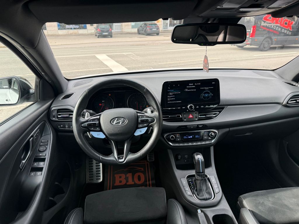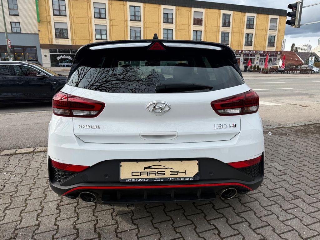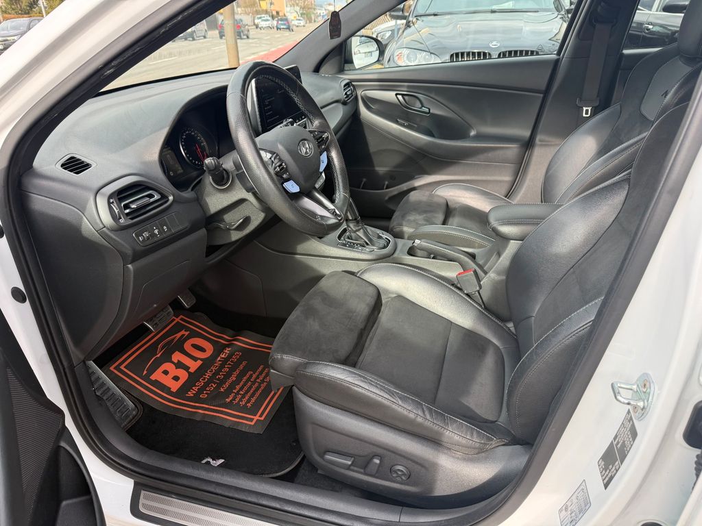 6 Lautsprecher, Ablagetasche an Vordersitzlehnen, Airbag Beifahrerseite, Airbag Beifahrerseite abschaltbar, Airbag Fahrerseite, Aktives Bremslicht (ESS), Audiosystem: Radio RDS, Auspuffanlage mit Klappensteuerung, Außenspiegel elektr. anklappbar, Außenspiegel elektr. verstell- und heizbar, beide, Außenspiegel mit Umfeldleuchte, Außenspiegel schwarz glänzend, Blinkleuchte in Außenspiegel integriert, Bordcomputer, Bremsassistent, Bremssättel rot lackiert, Dachhimmel schwarz, Dachspoiler schwarz, Diffusoreinsatz Heckspoiler (schwarz, glanzlackiert), Einschaltautomatik für Fahrlicht / Lichtsensor, Elektr. Bremskraftverteilung, Elektron. Differentialsperre (EDS) N Corner Carving Differential, Elektron. Stabilitätskontrolle (ESC) mit Bremsassistent, Fahrassistenz-System: aktiver Spurhalteassistent (LKAS, Lane Keep Assist System), Fahrassistenz-System: Aufmerksamkeits-Assistent, Fahrassistenz-System: Autonome Notbremsfunktion inkl. Frontkollisionswarnung (FCA), Fahrassistenz-System: Berganfahrhilfe, Fahrassistenz-System: Einparkhilfe vorn und hinten, Fahrassistenz-System: Fernlichtassistent, Fahrassistenz-System: Intelligente Beschleunigungskontrolle (Launch-Control), Fahrassistenz-System: Sicherheitssystem mit automatischem Notruf (ERA GLONASS / eCall), Fahrer-Informations-System (Display 4,2 Zoll), Fensterheber elektrisch hinten, Fensterheber elektrisch vorn und hinten, mit Auf-/Ab-Automatik, Fensterrahmen Zierleisten schwarz glänzend, Freisprecheinrichtung Bluetooth, Frontscheibe mit Bandfilter oben, Frontscheibe wärmedämmend, Gegenlenkunterstützung (Vehicle Stability Management, VSM), Gepäck-/Laderaumleuchte, Gepäckraumabdeckung / Rollo, Getriebe 8-Gang - Doppelkupplungsgetriebe DCT, Getränkehalter hinten, Getränkehalter vorn, Gurtstraffer, Heckleuchten LED, Heckscheibe heizbar, Induktionsladeschale für Smartphone, Innenspiegel mit Abblendautomatik, Isofix-Aufnahmen für Kindersitz, Karosserie: 5-türig, Klimaautomatik 2-Zonen, Kopf-Airbag-System, Kopfstützen hinten verstellbar, Kühlergrill schwarz (glanzlackiert), Lendenwirbelstütze Sitz vorn links, elektr. verstellbar, Lenkrad (Sport/Leder), Lenkrad heizbar, Lenkrad mit Schaltwippen, Lenksäule (Lenkrad) verstellbar (vertikal / axial), Leseleuchten vorn und hinten LED, Leuchtweitenregelung, LM-Felgen, Mittelarmlehne hinten mit Getränkehalter, Modellpflege, Motor 2,0 Ltr. - 206 kW TGDI KAT, Motorhaubenisolierung, Navigations-Paket, Otto-Partikelfilter (OPF), Pedale Aluminium, Radioempfang digital (DAB+), Reifen-Reparaturkit, Reifendruck-Kontrollsystem, Rückfahrkamera, Rücksitzlehne geteilt/klappbar, Schadstoffarm nach Abgasnorm Euro 6d, Schalt-/Wählhebelgriff Leder mit Metall-Applikationen, Scheibenbeschlagerkennung / Regelung, Scheinwerfer LED, Seitenairbag vorn, Seitenscheiben ab B-Säule abgedunkelt, Seitenschweller schwarz, Sicherheitsgurte vorn höhenverstellbar, Sitz vorn links höhenverstellbar, Sitz vorn links mit ausziehbarer Oberschenkelauflage, Sitz vorn rechts höhenverstellbar, Sitzheizung vorn, Smartphone Schnittstelle (Apple CarPlay & Android Auto), Sonnenblenden mit Spiegel (beleuchtet), Sportfahrwerk, Sportsitze, Start-Stop-Knopf, Start/Stop-Anlage, Steckdose (12V-Anschluß) im Koffer-/Laderaum, Stoßfänger Wagenfarbe, Tagfahrlicht LED mit Blinker Funktion, Touchscreen-Farbdisplay (8,0 Zoll), Türgriffe außen Wagenfarbe, USB-Anschluss + AUX-IN-Anschluss, Verglasung getönt, Warnanlage für Sicherheitsgurte, Fahrer-/Beifahrerseite, Zwischengas-Funktion