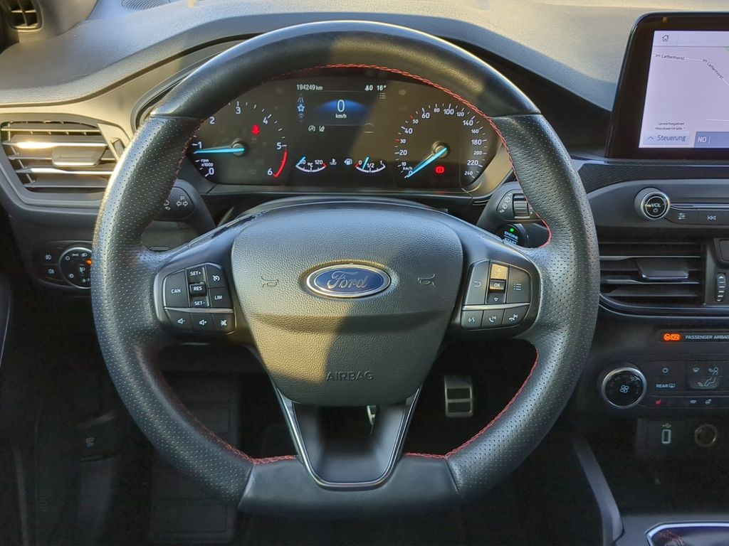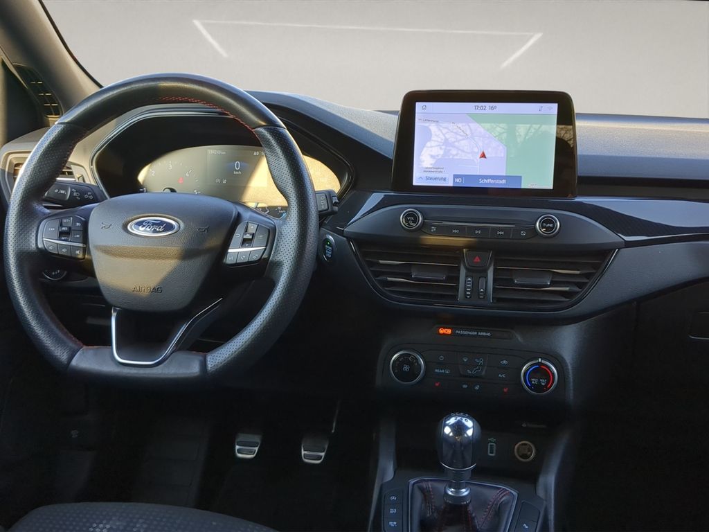 Airbag Beifahrerseite abschaltbar, Antischlupfregelung (ASR), Audio-Navigationssystem Ford mit AppLink, Außenspiegel elektr. anklappbar, Außenspiegel elektr. verstell- und heizbar, Blinkleuchte in Außenspiegel integriert, Body-Styling-Paket, Bord-/Verbrauchscomputer, Dachhimmel Stoff, dunkel, Dachreling schwarz, Dachspoiler Wagenfarbe, Dimmer Instrumentenbeleuchtung, Doppelendrohr Auspuffanlage, Elektr. Bremskraftverteilung (EBD), Fahrassistenz-System: Berganfahr-Assistent (Hill-Holder), Fahrassistenz-System: Notbrems-Assistent, Fahrassistenz-System: Post-Collision-System, Fahrassistenz-System: Pre-Collision-System, Fahrassistenz-System: Spurhalteassistent, Farbdisplay für Bordcomputer, Fensterheber elektrisch vorn + hinten mit Komfortschließung, FordPass Connect inkl. eCall, Fußmatten Velours - vorn, Gepäckraumabdeckung / Rollo, Innenraumfilter: Staub- und Pollenfilter, Intelligent Protection System (IPS), Intelligenter Geschwindigkeits-Begrenzer, Isofix-Aufnahmen für Kindersitz, Karosserie: 5-türig, Kopfstützen hinten mechan. verstellbar (3 Stück), Kopfstützen vorn 4-fach verstellbar, Laderaumboden verstellbar, Lenkrad (Sport/Leder, ST), Lenksäule (Lenkrad) höhen-/längsverstellbar, LM-Felgen, Motor 2,0 Ltr. - 110 kW EcoBlue KAT, My Key (2. Fahrzeugschlüssel programmierbar), Nebelscheinwerfer LED, Parkbremse elektrisch mit Auto-Hold-Funktion, Parkpilotsystem vorn und hinten, Pedale Aluminium, Reifendruck-Kontrollsystem, Reserverad als Notrad, Rücksitzlehne geteilt/klappbar (60:40), Schadstoffarm nach Abgasnorm Euro 6d-TEMP, Schalt-/Wählhebelgriff Aluminium, Schaltpunktanzeige, Scheinwerfer mit abgedunkelten Hintergrund, Scheinwerfer-Assistent mit Tag-/Nachtsensor, SCR-System (AdBlue-Technologie), Sitz vorn links höhenverstellbar, Sonnenblende links mit Spiegel, Sonnenblende rechts mit Spiegel, Sport-Fahrwerk, Start/Stop-Anlage, Steckdose (12V-Anschluß) im Koffer-/Laderaum, Verglasung getönt, Warnanlage für Sicherheitsgurte hinten, Warnanlage für Sicherheitsgurte vorn, Geschwindigkeitsbegrenzer mit vorausschauender Regelung