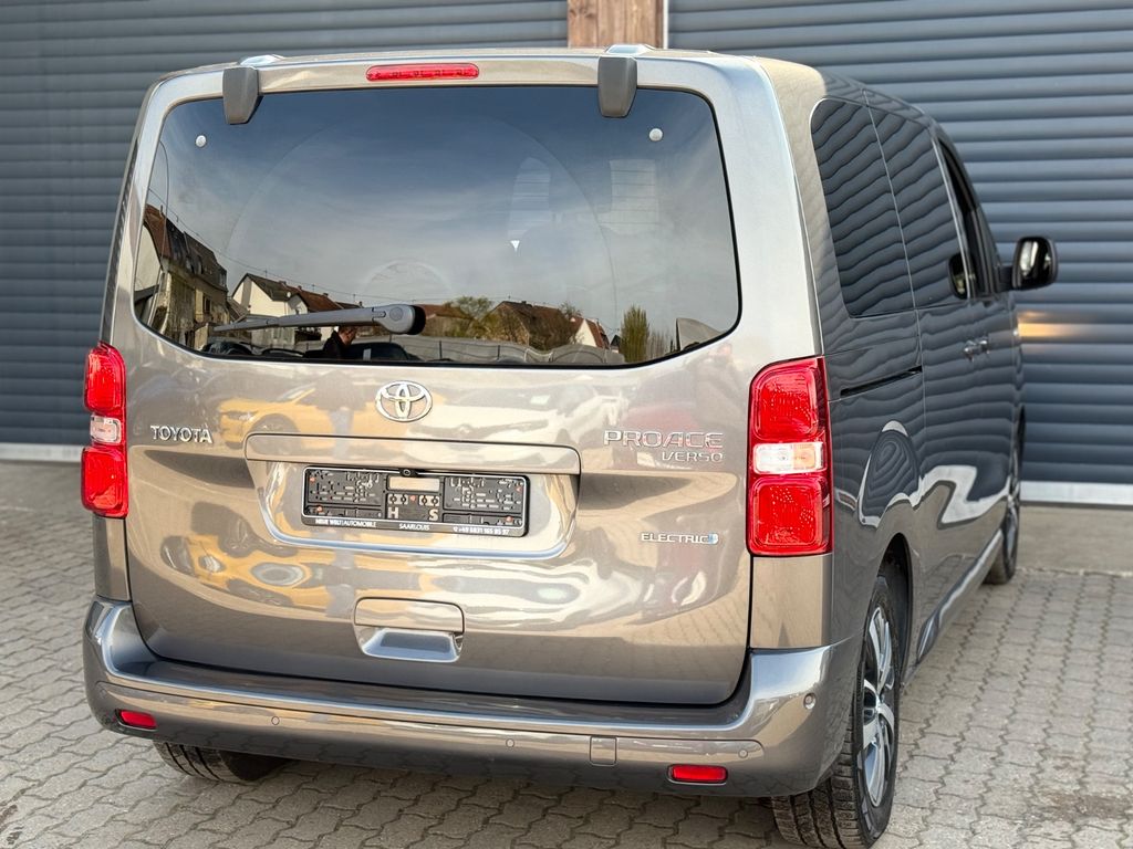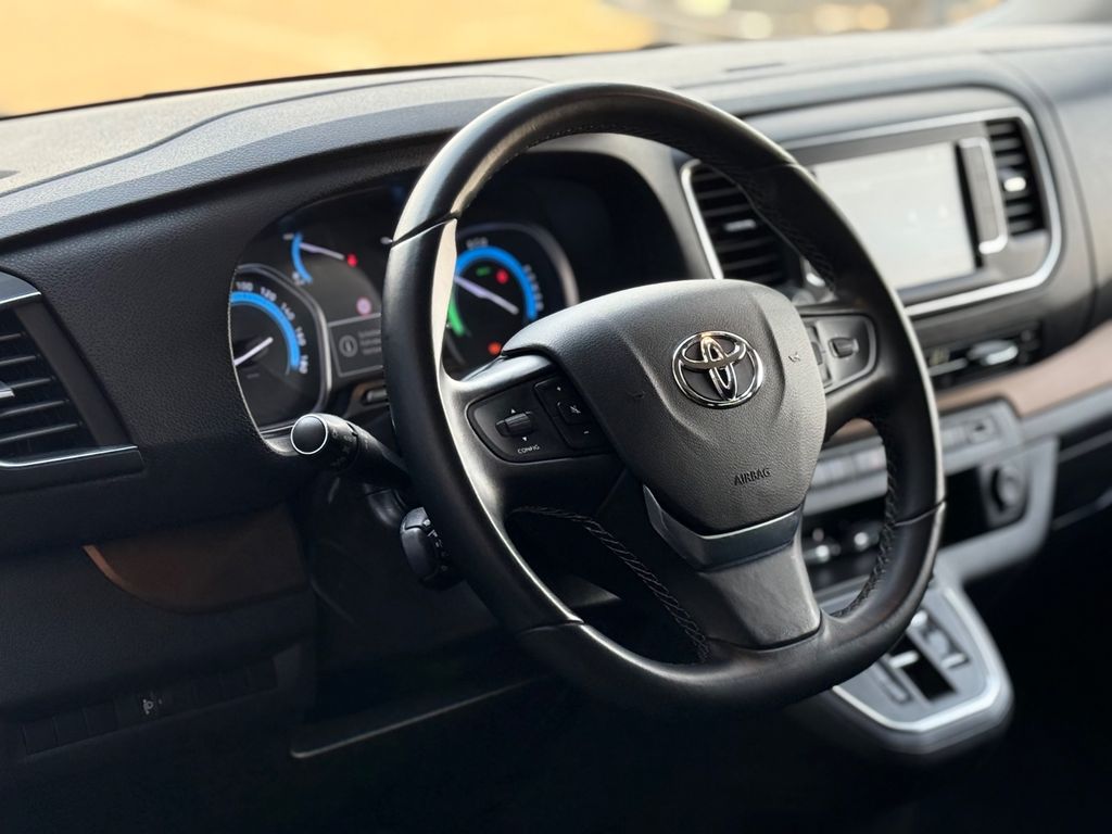 2.Sitzreihe mit Sitzbank geteilt/klappbar, 3. Bremsleuchte, 3.Sitzreihe mit Sitzbank geteilt/klappbar, Airbag Beifahrerseite abschaltbar, Airbag Fahrer-/Beifahrerseite, Audiobedienung am Lenkrad, Automatische Stabilitäts-Control und Traktion (ASC + T), Außenspiegel elektr. verstell-, heiz- und anklappbar, Beifahrereinzelsitz, Bordcomputer, Bremsassistent, Chromeinfassung für Nebelscheinwerfer, DAB-Tuner (Radioempfang digital), Einschaltautomatik für Fahrlicht, Elektr. Bremskraftverteilung, Elektromotor 100 kW, Fahrassistenz-System: Berganfahrkontrolle (HAC), Fahrassistenz-System: Totwinkel-Assistent (BLIS), Frontscheibe Verbundglas, Gepäckraum-Abtrennung (Netz), Gepäckraumabdeckung / Rollo, Gepäcksicherungsnetz, Getriebe für Elektrofahrzeug, Handschuhfach abschließbar, Heckklappe mit separat zu öffnendem Fenster, Heckklappe mit Verglasung, Heckscheibe heizbar, Heckscheibenwischer, HV-Batterie 50 kWh, Innenausstattung: Aluminium eloxiert, braun, Innenspiegel mit Abblendautomatik, Isofix-Kindersitz-System, Karosserie/Aufbau: Kombi, Kinderspiegel (zusätzlicher Innenspiegel für den Fond), Klapptische in Fahrer- und Beifahrersitzlehne integriert, Klimaautomatik 2-Zonen, Kopf-Airbag-System, Kopfstützen hinten, Ladeboden Antirutschbelag (Polypropylen), Lenksäule (Lenkrad) verstellbar, Leseleuchte, LM-Felgen, Navigationssystem: Multimedia Toyota Touch Pro, Parkbremse elektrisch (EPB), Radstand 3275 mm, Reifendruck-Kontrollsystem, Reserverad in Fahrbereifung, Rückfahrkamera, Schiebetür links mit Verglasung, Schiebetür rechts mit Verglasung, Schwellerabdeckung / -verkleidung Wagenfarbe, Seitenairbag hinten, Seitenairbag vorn, Sitz vorn links höhenverstellbar, Sitzausstattung: 8-Sitzer, Sitzheizung vorn, Sonnenschutzrollo an Seitenscheiben hinten, Steckdose (12V-Anschluß) Koffer-/Laderaum, Stoßfänger mit Chromeinlage, Stoßfänger Wagenfarbe, Toyota Safety Sense, Türgriffe außen Wagenfarbe, Wärmeschutzverglasung getönt