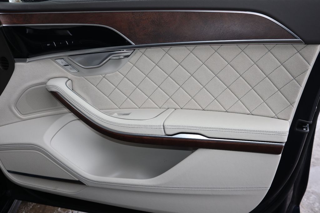 belüftete Komfort-Individualkontursitze mit erweiterter RAUTENSTEPPUNG und Massagefunktion in Leder Valcona perlmuttbeige ( 4-Sitzer ) / Fondsitzpaket RUHESITZ elektrisch verstellbar mit durchgehend belederter Mittelkonsole hinten und Massagefunktion und Sitzbelüftung hinten und Fußmassage und Fußheizung hinten rechts / 2xRuhekissen im Fond audi exclusive / Volllederpaket mit Kontrastnähten / Dachhimmel und Heckablage in Alcantara schwarz audi exclusive / Komfortkopfstützen hinten / B&O-Premium Soundsystem mit 3-D Klang / digitaler TV Empfang + Pay-TV + DAB / Sicherheitspaket / smartphone-Interface / audi music interface im Fond / Telefonie im Fond mit Wireless Charging / Wärme-Komfort Paket vorne und hinten / Matrix -LED Leseleuchten / Bildschirme im Fond (Rear Seat Entertainment) / Durchladeeinrichtung / 230-V-Steckdose / 2 Klapptische im Fond audi exclusive / Fußstützen hinten / zentrale Bedieneinheit im Fond / audi virtual cockpit plus / Ambiente Lichtpaket Plus / Lenkradheizung / Standheizung mit Fernbedienung / Dekoreinlagen Nussbaumwurzel naturell