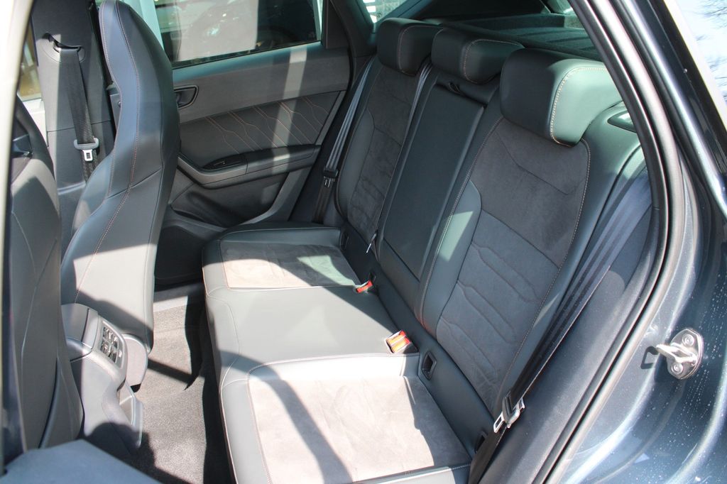 3. Bremsleuchte, Ablagetasche an Vordersitzlehnen, Airbag Beifahrerseite abschaltbar, Airbag Fahrer-/Beifahrerseite, Ambiente-Beleuchtung LED, Antriebs-Schlupfregelung (ASR), Audio-Navigationssystem mit Touchscreen Farbbildschirm, Außenspiegel elektr. verstell-, heiz- und anklappbar mit Spiegelabsenkung und Welcome Light, Bluetooth-Schnittstelle mit Freisprecheinrichtung integriert, Bordcomputer, Brillenfach, Dachhimmel schwarz, Dachreling schwarz, Doppelendrohr Auspuffanlage, links/rechts, Doppeltonhorn, Einstiegsleisten (Aluminium) vorn, beleuchtet, Elektron. Differentialsperre (XDS), Fahrassistenz-System: Adaptive Fahrwerksregelung (DCC), Fahrassistenz-System: Fahrprofilauswahl (CUPRA Drive Profile), Fahrassistenz-System: Parklenkassistent mit Einparkhilfe vorn und hinten inkl. Rückfahrkamera, Fensterheber elektrisch vorn + hinten mit Komfortschaltung, Full Link (MirrorLink, Apple CarPlay und Android Auto), Fußraumbeleuchtung LED, Gepäckraumabdeckung / Rollo, Handschuhfach mit LED-Beleuchtung, Heckleuchten LED mit dynamischem Blinklicht, Heckspoiler Wagenfarbe (Dachspoiler), Induktionsladeschale für Smartphone, Isofix-Aufnahmen für Kindersitz an Rücksitz, Kamerasystem Umgebungsansicht (Top View, 360°), Karosserie: 5-türig, Klimaanlage Climatronic 2-Zonen, Knieairbag Fahrerseite, Kombiinstrument digital (virtual cockpit), Kopf-Airbag-System, Lendenwirbelstütze Sitz vorn links, verstellbar, Lendenwirbelstütze Sitz vorn rechts, verstellbar, Licht- und Sicht-Paket, Mittelarmlehne hinten, Mittelkonsole vorn mit Mittelarmlehne, Becherhalter, Ablagebox und Luftausströmer hinten, Modellpflege, Motor 2,0 Ltr. - 221 kW 16V TSI, Notrufsystem, Otto-Partikelfilter (OPF), Parkbremse elektrisch, Pedale Aluminium-Design, Radlaufabdeckung vorn und hinten lackiert, Radstand 2631 mm, Rücksitzlehne geteilt/klappbar (1/3-2/3), Schadstoffarm nach Abgasnorm Euro 6d, Schriftzug auf der Heckklappe, Seitenairbag, Seitenscheiben hinten und Heckscheibe abgedunkelt, Sitz vorn links höhenverstellbar, Sitz vorn rechts höhenverstellbar, Sitzbezug / Polsterung: Sitzmittelbahn in Mikrofaser, Sonnenblende links mit Spiegel (beleuchtet), Sonnenblende rechts mit Spiegel (beleuchtet), Sport-Schalensitze vorn mit integrierten Kopfstützen, Start/Stop-Anlage, Stau-/Ablagefach unter Sitz vorn links, Steckdose (12V-Anschluß) vorn, Stoßfänger hinten Cupra-Design mit Diffusor, Stoßfänger vorn Cupra-Design, USB-Ladeanschlüsse (2-fach, Typ C) für 2.Sitzreihe, Verzurrösen Koffer-/Laderaum, Wärmeschutzverglasung, Leichtmetallräder, Nebelscheinwerfer, Seitenscheiben hinten und Heckscheibe abgedunkelt