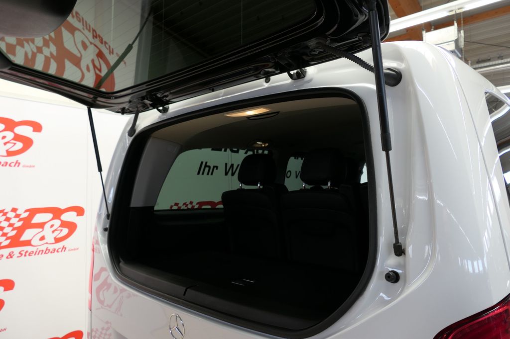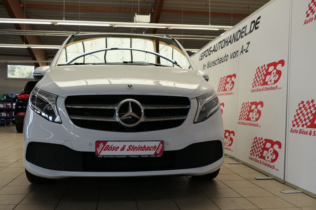 Sonderausstattung:Akustik-Paket, Ambiente-Beleuchtung Armaturentafel, Dachkantenspoiler AMG, Dachreling (Aluminium eloxiert), Design-Paket Interieur, Fahrassistenz-Paket, Fernlichtassistent Plus, Verkehrs-Informations-System Live Traffic, Verkehrszeichenerkennung, Fernbedienung für Zusatzheizung, Fußmatten Velours, Gepäcksicherungsnetz, Getränkehalter hinten, Heckklappe mit automatischem Öffnungs- und Schließsystem, Heckscheibe aufstellbar, Hold-Funktion, Innenausstattung: Zierteile Doppelstreifen Optik, Innenraumlicht-Paket, Intelligent Light System LED, Komfort-Klimaautomatik Thermotronik, Kopf-Airbag-System (Windowbag) hinten, Kraftstofftank: vergrößert, Laderaumunterteilung, Lastenverankerung / Verzurrösen, LM-Felgen 7x17 (5-Speichen), Media Interface (Universal-Schnittstelle für iPod / AUX / USB), Multimediasystem MBUX (Touchscreen 10,25"), Navigationssystem für Multimediasystem MBUX, Scheibenwaschanlage beheizt, Schiebetür Lade-/Fahrgastraum links, Schiebetür links u. rechts elektrisch, Fahrersitz mit Lendenwirbelstütze, Sitze im Lade-/FG-Raum: 2.Reihe, 3er-Sitzbank Komfort, Smartphone-Integration (Apple CarPlay und Android Auto), Vorbereitung Navigationssystem (für Multimediasystem MBUX), Zusatzheizung (Warmwasser)