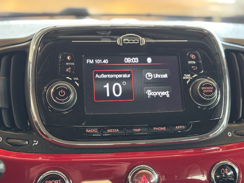 Airbag Fahrer-/Beifahrerseite, Autom. Begleitfunktion der Beleuchtung (Follow me home), Automatische Türverriegelung, Außenspiegel elektr. verstell- und heizbar, beide, Beifahrerairbag abschaltbar, Bordcomputer, Bremssättel Rot lackiert, Chrom-Paket, Elektr. Bremskraftverteilung, Fahrassistenz-System: Bremsassistent, Geschwindigkeits-Begrenzeranlage, Heckscheibe heizbar, Infotainment-System: UConnect (Touchscreen 5"), Innenausstattung: Dekoreinlagen Armaturenbrett, lackiert, Isofix-Aufnahmen für Kindersitz an Rücksitz, Karosserie: 3-türig, Knieairbag Fahrerseite, Kopf-Airbag-System vorn und hinten, Kopfstützen hinten, Kühlergrill verchromt, Lenksäule (Lenkrad) höhenverstellbar, LM-Felgen, Modellpflege, Motor 0,9 Ltr. - 77 kW KAT, Positions-Memory für Beifahrersitz, Reifen-Reparaturkit, Reifendruck-Kontrollsystem, Rücksitz geteilt / klappbar, Schadstoffarm nach Abgasnorm Euro 6, Seitenairbag vorn, Start/Stop-Anlage, Steckdose (12V-Anschluß) im Armaturenbrett, Steckdose (12V-Anschluß) vorn, Stoßfänger Wagenfarbe, Tankdeckel abschließbar, Türgriffe außen verchromt, Wärmeschutzverglasung