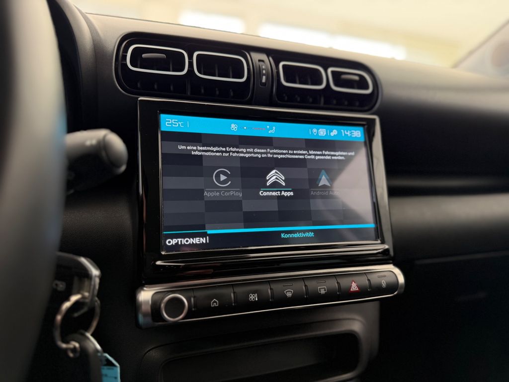 Entdecken Sie den CITROEN C3 Aircross - ein vielseitiges SUV mit zahlreichen Komfort- und Sicherheitsfeatures. Dieser gepflegte Gebrauchtwagen aus dem Jahr 2022 überzeugt durch seine umfangreiche Ausstattung und moderne Technologie. Der sparsame Dieselmotor mit 110 PS und manuellem Getriebe bietet eine gute Balance zwischen Leistung und Effizienz. Die weiße Außenfarbe harmoniert perfekt mit dem schwarzen Stoffinterieur. Mit Frontantrieb und Euro-6-Emissionsklasse (grüne Plakette) ist dieses Fahrzeug umweltbewusst unterwegs.Die 3-Zonen-Klimaautomatik sorgt für angenehmes Raumklima, während das Navigationssystem mit Touchscreen, Apple CarPlay und Android Auto für optimale Konnektivität steht. Besonders praktisch sind die 360-Grad-Kamera und Parksensoren vorne und hinten. Sicherheitsfeatures wie Spurhalteassistent, Verkehrszeichenerkennung und Müdigkeitswarner machen jede Fahrt entspannter.