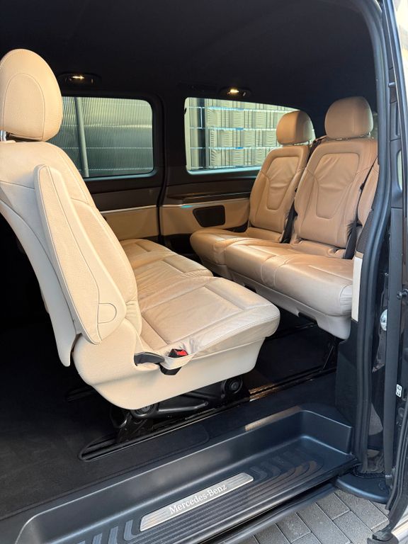 AMG-Line, Fahrassistenz-Paket Standard, Fahrassistenz-System: Fernlichtassistent Plus, Fahrassistenz-System: Verkehrs-Informations-System Live Traffic, Fahrwerks-Dämpfungssystem Agility Control, Heckklappe mit automatischem Öffnungs- und Schließsystem, Hold-Funktion, Innenausstattung: Zierteile Carbon-Optik, Klemmleiste für elektr. Anschlüsse (Sitzkasten Fahrersitz), Klimaautomatik Fond (Tempmatik), Komfort-Klimaautomatik Thermotronik, Kraftstoff-Filter mit Wasserabscheider, Kraftstofftank: vergrößert, LM-Felgen 8x19 (AMG, 7-Doppelspeichen, schwarz), Luftfilter: mit Wartungsanzeige, Metallic-Lackierung, Mittelkonsole vorn mit Rollo / Ablage, Multimediasystem MBUX (Touchscreen 10,25"), Navigationssystem für Multimediasystem MBUX, Park-Paket mit 360° Kamera, Schiebetür links elektrisch, Schiebetür rechts elektrisch, Sitze im Fahrerhaus: Fahrersitz mit Lendenwirbelstütze, Sitze im Lade-/FG-Raum: 1.Reihe, 3er-Sitzbank Komfort, Sitze im Lade-/FG-Raum: 2.Reihe, 3er-Sitzbank Komfort, Smartphone-Integration (Apple CarPlay und Android Auto), Spiegel-Paket, Steckdosen (12V-Anschluß) im Lade-/Fahrgastraum, 2-fach, Verglasung hinten abgedunkelt / Schwarzglas