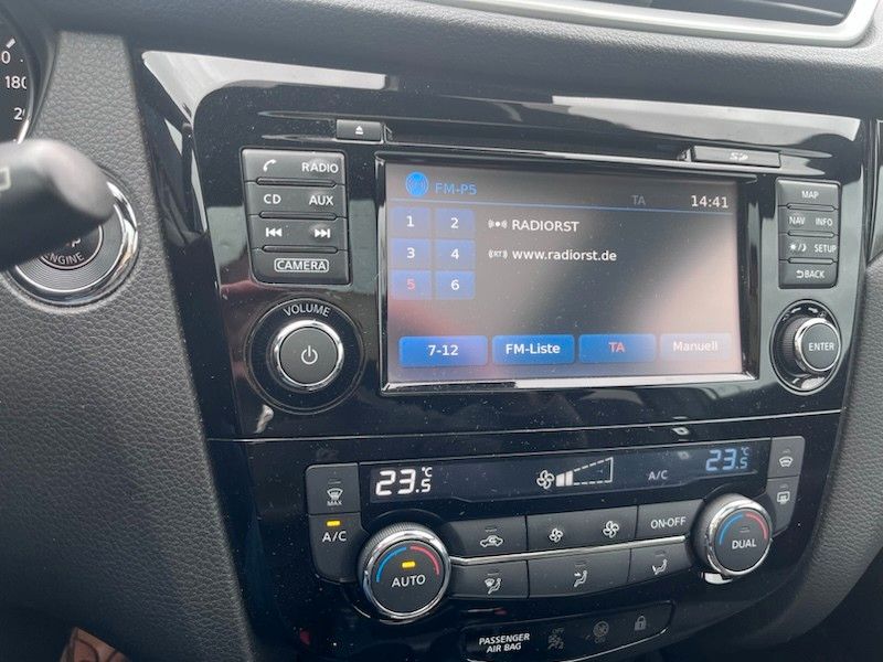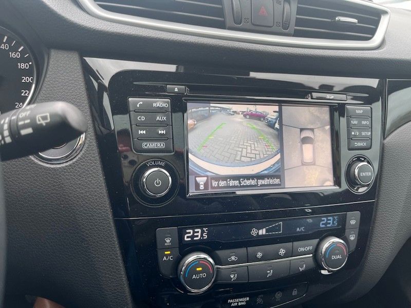 3. Bremsleuchte, Airbag Beifahrerseite abschaltbar, Airbag Fahrer-/Beifahrerseite und Seitenairbag vorn, Ambiente-Beleuchtung, Audio Navigationssystem Nissan Connect mit Touchscreen-Farbdisplay, Audiobedienung am Lenkrad, Audiosystem: Radio mit CD- und MP3-Player, Automatische Fahrlichtschaltung, AUX-IN-Anschluss (AUX-IN), Außenspiegel elektr. anklappbar, Außenspiegel elektr. verstell- und heizbar, Außenspiegel Wagenfarbe, Außentemperaturanzeige, Blinkleuchte in Außenspiegel integriert, Bordcomputer, Bremsassistent (Nissan Brake-Assist), Coming-Home-Lichtfunktion (Friendly Lightning), Design-Paket II, Elektr. Bremskraftverteilung (EBD), Fahrassistenz-Paket Visia, Fahrassistenz-System: Aktive Fahrkomfortregelung (Fahrwerksdämpfung), Fahrassistenz-System: Berganfahr-Assistent, Fahrassistenz-System: Fernlichtassistent, Fahrassistenz-System: Kurvenbremskontrolle (Aktive Spurkontrolle), Fahrer-Informations-System (FIS) mit Farbdisplay, Fensterheber elektrisch vorn + hinten, Fernentriegelung Tankklappe, Freisprechanlage Bluetooth, Frontscheibe Verbundglas, Gepäckraumabdeckung / Rollo, Getränkehalter in Mittelkonsole, Gurtstraffer, Handschuhfach beleuchtet, Heckscheibe heizbar, Innenraumfilter: Pollenfilter, Isofix-Aufnahmen für Kindersitz, Kamerasystem Around View, Karosserie: 5-türig, Klimaautomatik 2-Zonen, Kopf-Airbag-System, Kopfstützen vorn und hinten verstellbar, Lendenwirbelstütze Sitz vorn links, Lenksäule (Lenkrad) höhen-/längsverstellbar, Leseleuchte vorn, LM-Felgen, Mittelarmlehne hinten, Motor 1,2 Ltr. - 85 kW 16V KAT, Nebelschlussleuchte, Parkbremse elektrisch, Radstand 2646 mm, Reifen-Reparaturset, Reifendruck-Kontrollsystem, Rücksitz geteilt/klappbar, Schadstoffarm nach Abgasnorm Euro 6, Schalt-/Wählhebelgriff Leder, Schaltpunktanzeige, Scheibenwischer mit Intervallschaltung, Sitz vorn links elektr. verstellbar, Sitz vorn links höhenverstellbar, Sitz vorn rechts höhenverstellbar, Sitzbezug / Polsterung: Leder / Alcantara, Sitzheizung vorn, Sonnenblenden mit Spiegel, Start-Stop-Knopf, Start/Stop-Anlage, Steckdose (12V-Anschluß) in Mittelkonsole, Türgriffe innen verchromt, Wärmeschutzverglasung mit UV-Schutz