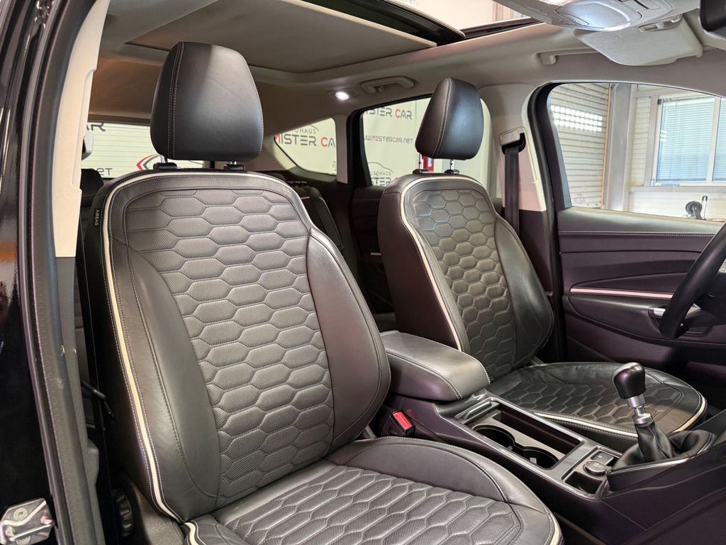 Ambiente-Beleuchtung (Multicolor-LED), Antischlupfregelung (ASR), Audio-Navigationssystem Ford SD (mit Ford SYNC), Audiobedienung am Lenkrad, Außenspiegel elektr. anklappbar, Außenspiegel elektr. verstell- und heizbar, Bi-Xenon-Scheinwerfer mit Abbiegelicht, Bordcomputer, Brillenfach in Dachhimmel / Dachkonsole integriert, Chromeinfassung Seitenscheiben, Dachspoiler Wagenfarbe, Dimmer Instrumentenbeleuchtung, Einstiegschienen mit Modell-Schriftzug, Elektr. Bremskraftverteilung (EBD), Fahrassistenz-System: Berganfahr-Assistent (Hill-Holder), Fahrassistenz-System: Notbrems-Assistent, Fahrassistenz-System: Park-Assistent (Active Park Assist), Fensterheber elektrisch vorn + hinten mit Komfortschließung, Fußmatten Velours, Innenraumfilter: Staub- und Pollenfilter, Intelligent Protection System (IPS), Isofix-Aufnahmen für Kindersitz, Karosserie: 5-türig, Klimaautomatik 2-Zonen, Lendenwirbelstütze Sitz vorn links, Lenksäule (Lenkrad) höhen-/längsverstellbar, Leuchtweitenregelung, Mittelarmlehne hinten, Modellpflege, Motor 1,5 Ltr. - 110 kW EcoBoost KAT, My Key (2. Fahrzeugschlüssel programmierbar), Otto-Partikelfilter (OPF), Parkbremse elektrisch, Radstand 2690 mm, Reifen-Reparaturkit, Reifendruck-Kontrollsystem, Rücksitzlehne geteilt/klappbar (60:40), Schadstoffarm nach Abgasnorm Euro 6d-TEMP, Schalt-/Wählhebelgriff Leder, Schaltpunktanzeige, Seitenschweller Wagenfarbe, Sitz vorn links elektr. verstellbar (mit Memory), Sitzbezug / Polsterung: Leder, Sonnenblende links mit Spiegel (beleuchtet), Sonnenblende rechts mit Spiegel (beleuchtet), Sportsitze vorn, Start/Stop-Anlage, Steckdose (12V-Anschluß) im Koffer-/Laderaum, Türgriffe außen Wagenfarbe, Unterfahrschutz, Unterfahrschutz hinten, Verglasung getönt, Verglasung hinten abgedunkelt (Privacy Glass), Warnanlage für Sicherheitsgurte hinten, Zierleisten unterhalb Seitenscheiben Chrom-Dekor