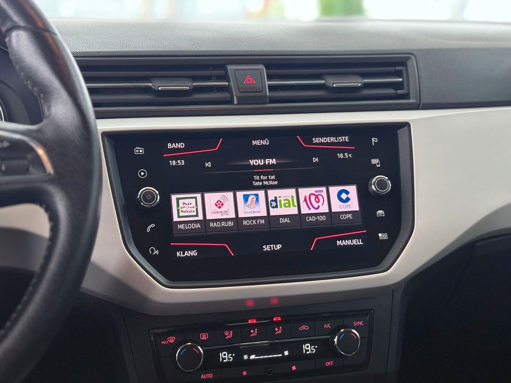 Dieser gepflegte SEAT Arona aus 2018 bietet als kompakter SUV ein überzeugendes Gesamtpaket für den Alltag. Der 3-Zylinder Benzinmotor mit 999 ccm Hubraum und 116 PS sorgt für angenehme Fahrleistungen bei moderatem Verbrauch. Die Automatikschaltung und der Frontantrieb machen das Fahren besonders komfortabel. Mit der grünen Umweltplakette und Euro 6 Einstufung ist der Arona auch für Umweltzonen bestens gerüstet.Die Ausstattung überzeugt mit zahlreichen Sicherheits- und Komfortfeatures: Automatische Klimaanlage, Xenon-Scheinwerfer mit LED-Tagfahrlicht, Regensensor und Lichtsensor. Für sicheres Parken sorgen Einparksensoren vorne und hinten sowie eine Rückfahrkamera. Der Innenraum in Schwarz mit Stoffbezügen bietet Platz für 5 Personen und verfügt über praktische Details wie Isofix-Befestigungen, Armlehne und Multifunktionslenkrad.
